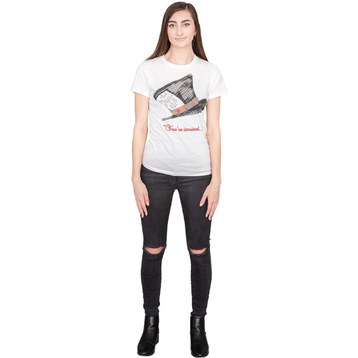 Alice in Wonderland Mad Hatter Hat You're Invited Juniors White T Shirt Tee
