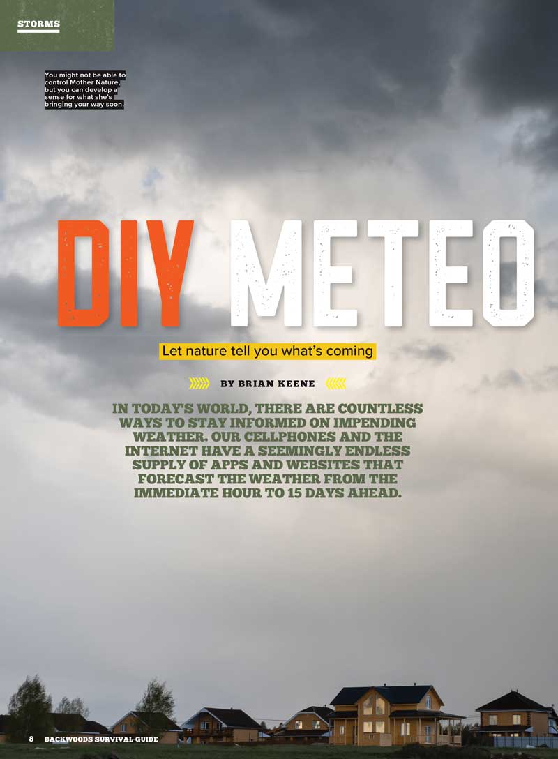Welcome to the 27th issue of Backwoods! Summer is upon us, so we have several stories with that in mind. Learn how to stay cool when you’re out and about and how to find water if you’re traveling through the desert. Heat can be a problem for our animals, so we’ve shared several tips on how to help them. We also have a buyer’s guide for clothing that’s well suited for hot weather. In addition, you can learn about finding and using medicinal plants, cooking dinner over an open flame, assembling nifty meal packs that you can use on the trail or in an evacuation situation, how to use granola and oatmeal, and what to consider if you’re planning to add solar power to the mix.