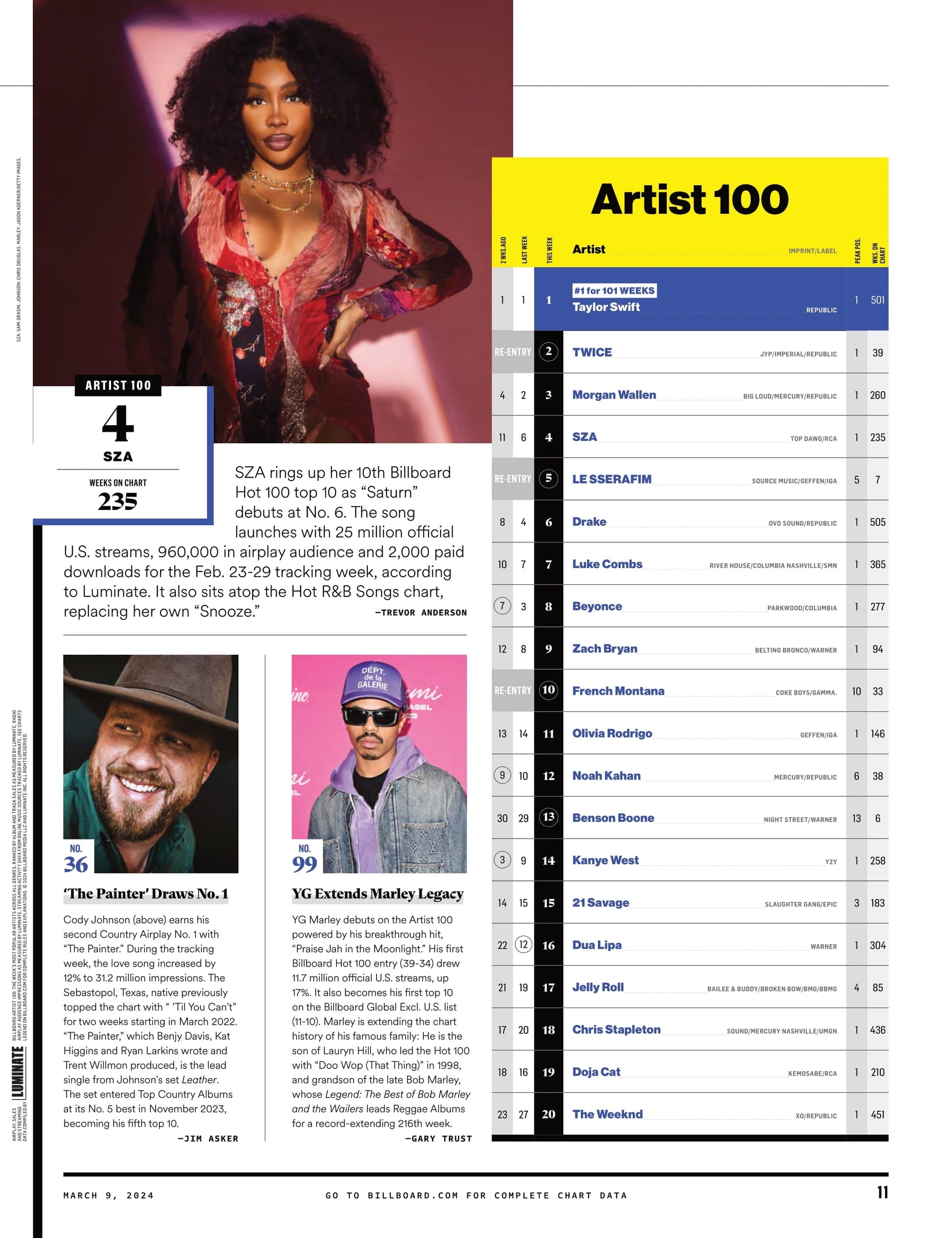 - SZA Rings Up Her First 10th Billboard Hot 100