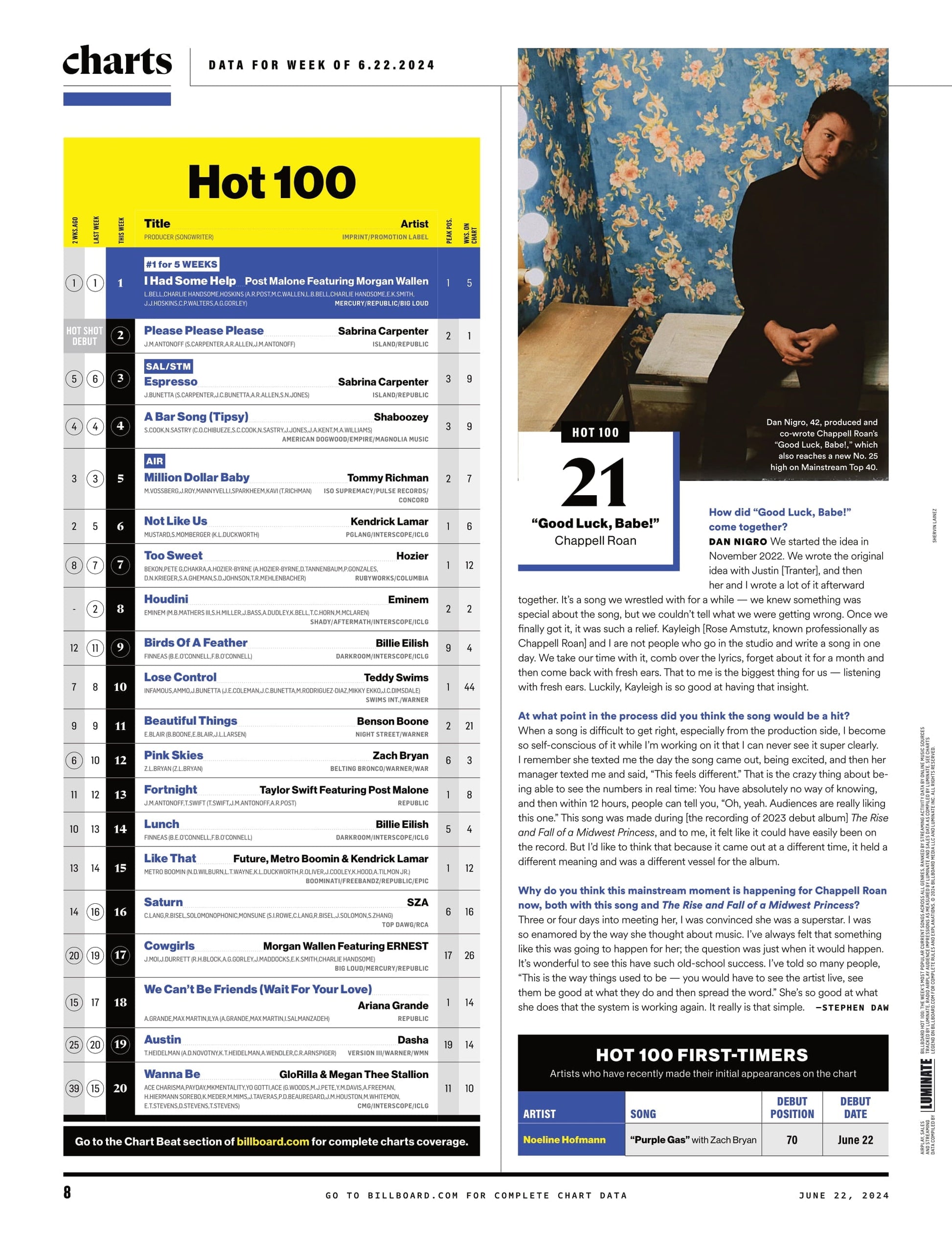 Billboard - 24.06.22 Edition: How Ty Dolla $ign Gets Across The Finish Line, Sabrina Carpenter Espresso, Billie Eilish, Chappell Roan's Rise, Kendrick Lamar Historic Beef, Billboard 200 & More!