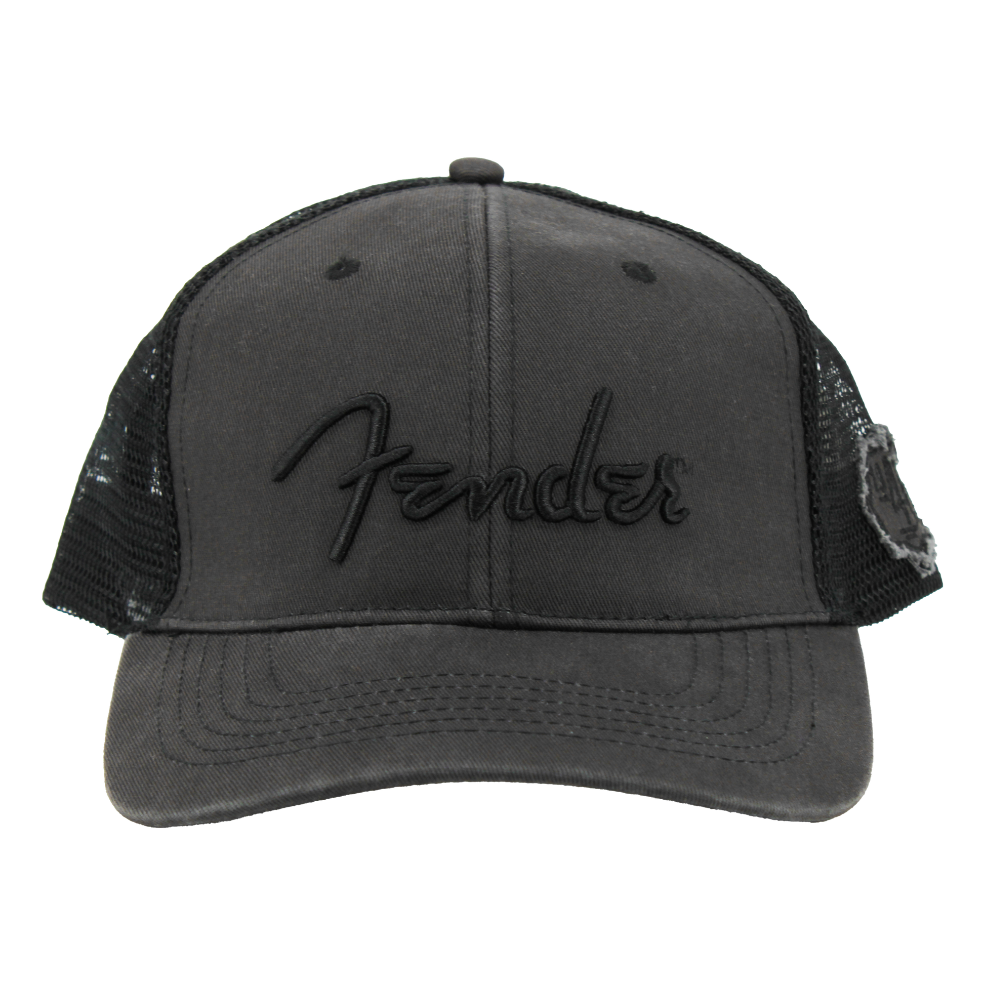Fender Black Out Mesh Back Trucker Hat Cap Black