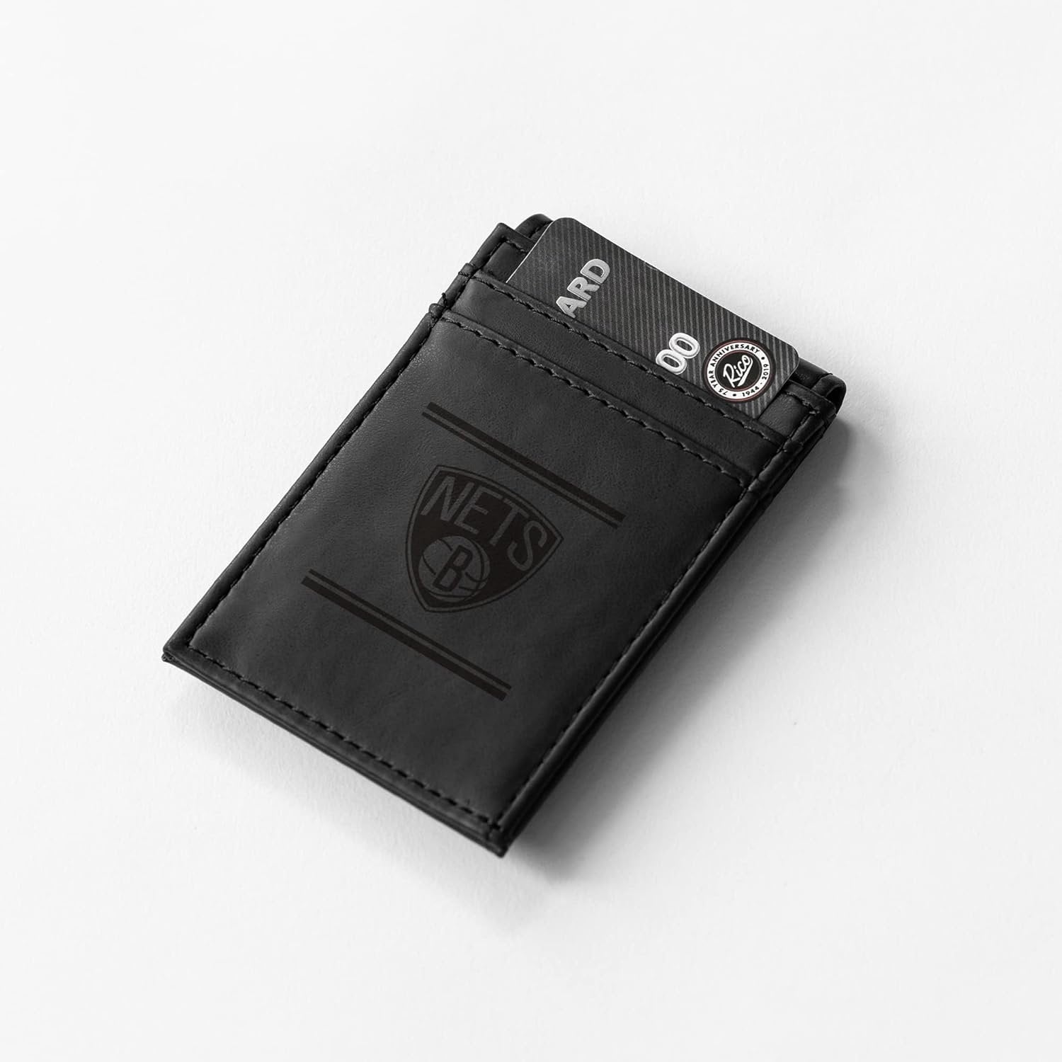 Brooklyn Nets Premium Black Leather Wallet, Front Pocket Magnetic Money Clip, Laser Engraved, Vegan