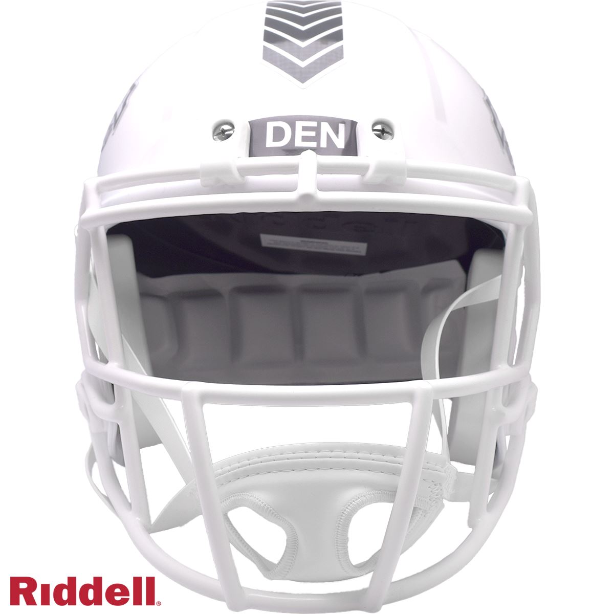 Riddell’s 2024 NFL Salute to Service helmets are inspired by those used by the military for decades, and are meant to honor the memory and selfless sacrifices of service members past and present. Each helmet features a gloss white shell and face mask. Decals and camouflage patterns match the official 2024 Salute to Service design elements and colorway. A chevron stripe pattern is used on every helmet, along with city name abbreviations on front bumpers, and Salute to Service back bumper decals. The camouflage wraparound decal includes the official Salute to Service ribbon and a full-color U.S. flag. Side decals are dark gray anthracite, one-color depictions of team logos.