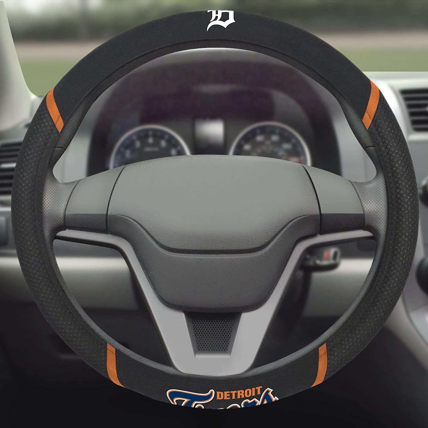 Detroit Tigers Steering Wheel Cover Premium Embroidered Black 15 Inch