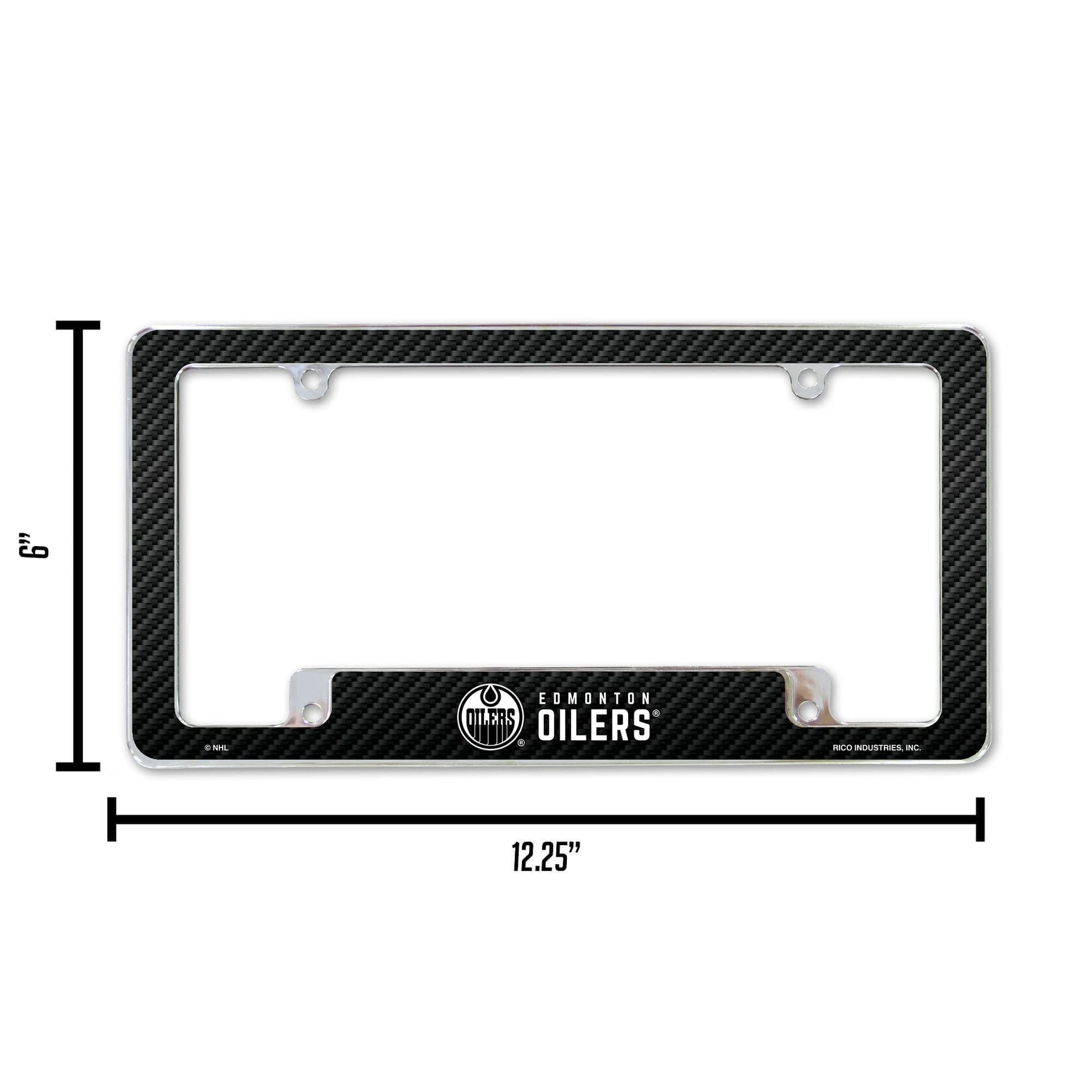 Edmonton Oilers Metal License Plate Frame Chrome Tag Cover, Carbon Fiber Design, 6x12 Inch