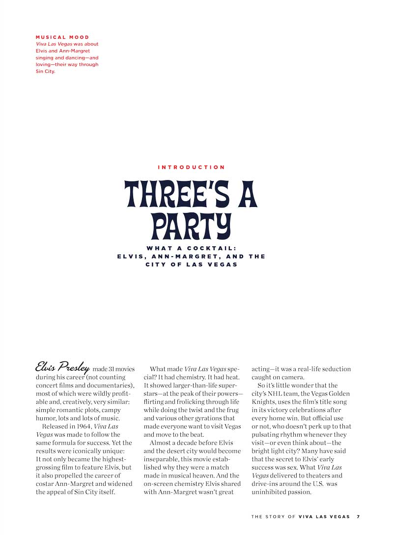 Elvis Presley made 31 films during his career—almost all of which were wildly profitable and, creatively, mostly the same: simple romantic plots, campy humor, lots and lots of music. Released in 1964, Viva Las Vegas was built to follow the same formula for success. Yet the results were iconically different: It not only became the highest grossing film to feature Elvis, it propelled the career of costar Ann-Margret and widened the appeal of Sin City itself. What made Viva Las Vegas special? It had chemistry. It had heat. It showed larger-than-life superstars—at the peak of their powers—flirting and frolicking their way through life. Almost a decade before Elvis and Vegas became inseparable, this movie established why it was a match made in musical heaven. And the on-screen chemistry he shared with Ann-Margret wasn’t great acting—it was a real-life seduction caught on camera.