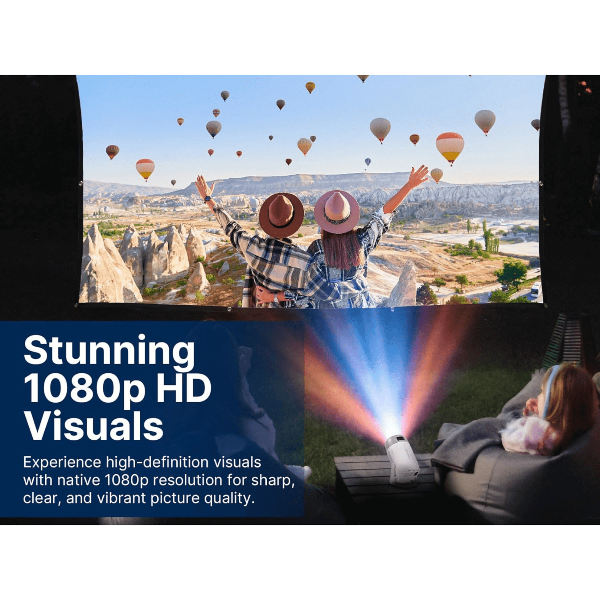 - Vivid Visuals: Stunning 1080p HD Visuals: Experience sharp, high-resolution imagery with native 1080p projection for an immersive viewing experience