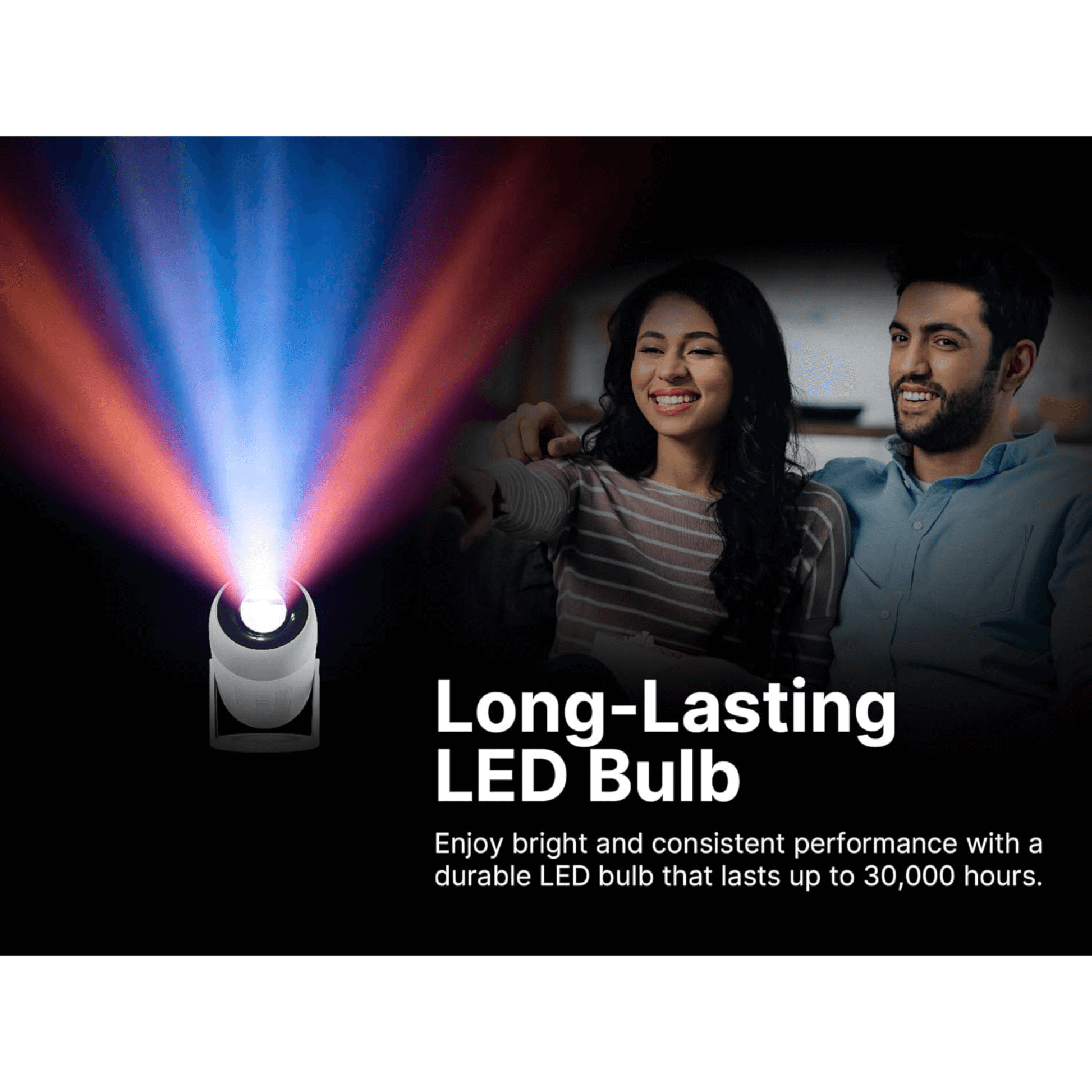 - Durable LED Bulb: Offers up to 30,000 hours of lifespan, ensuring lasting usage for countless viewing sessions