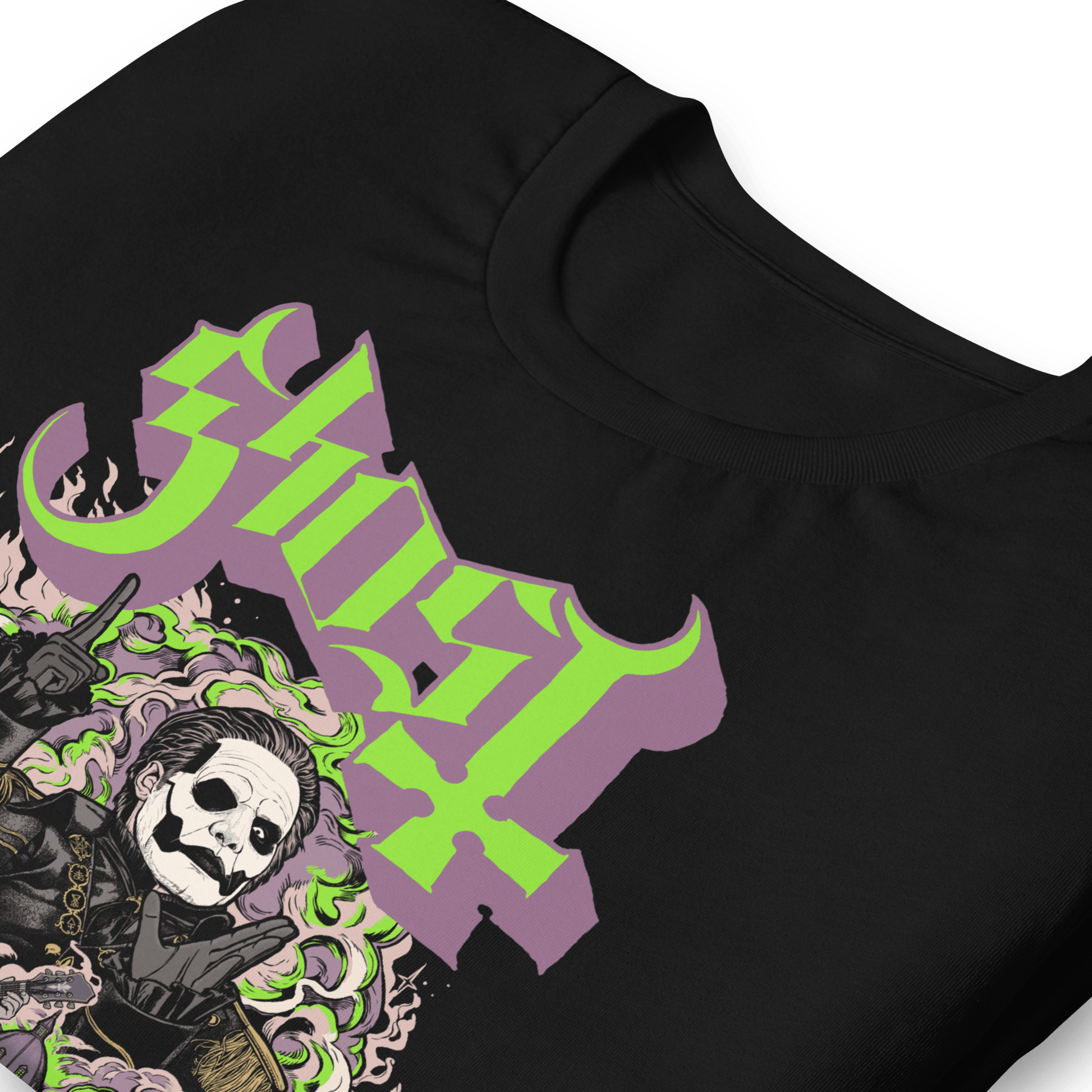 Step into the enigmatic realm of Ghost – the theatrical rock sensation that emerged in 2006, led by the mysterious Papa Emeritus. With hits like "Square Hammer" and "Rats," Ghost's occult-inspired music and mesmerizing performances have captivated a global audience. Experience the unique blend of melodic hooks and dark mystique that sets Ghost apart in the world of rock. Join the legion of fans enchanted by the mysterious allure of Ghost's sonic brilliance.Check out more of the best Ghost T-Shirts!