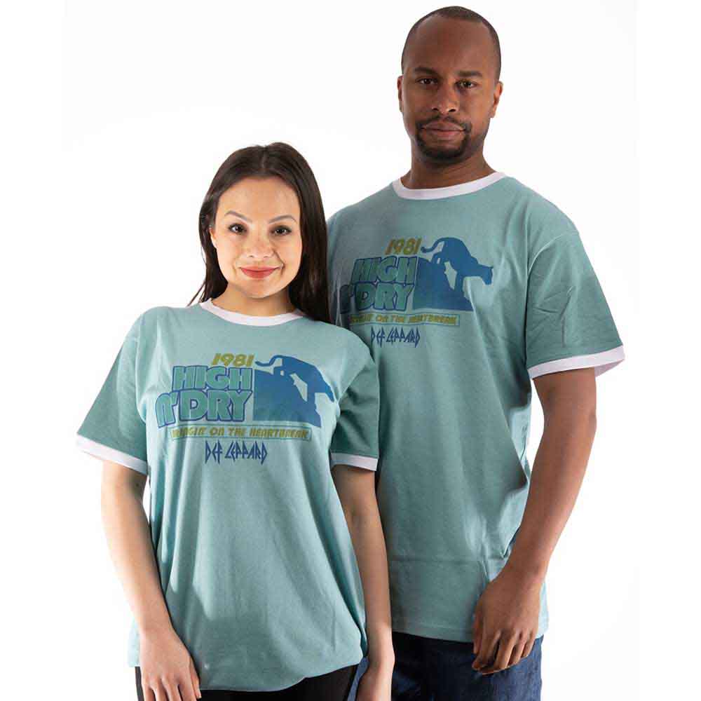 Def Leppard High N' Dry Mens Ringer T Shirt Green Officially Licensed