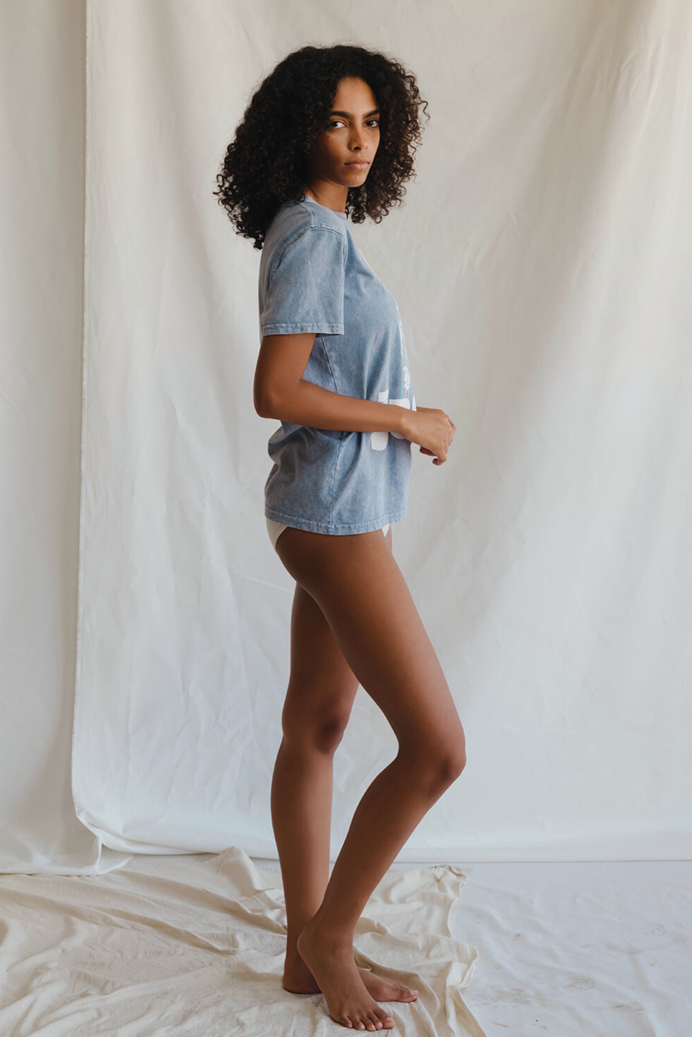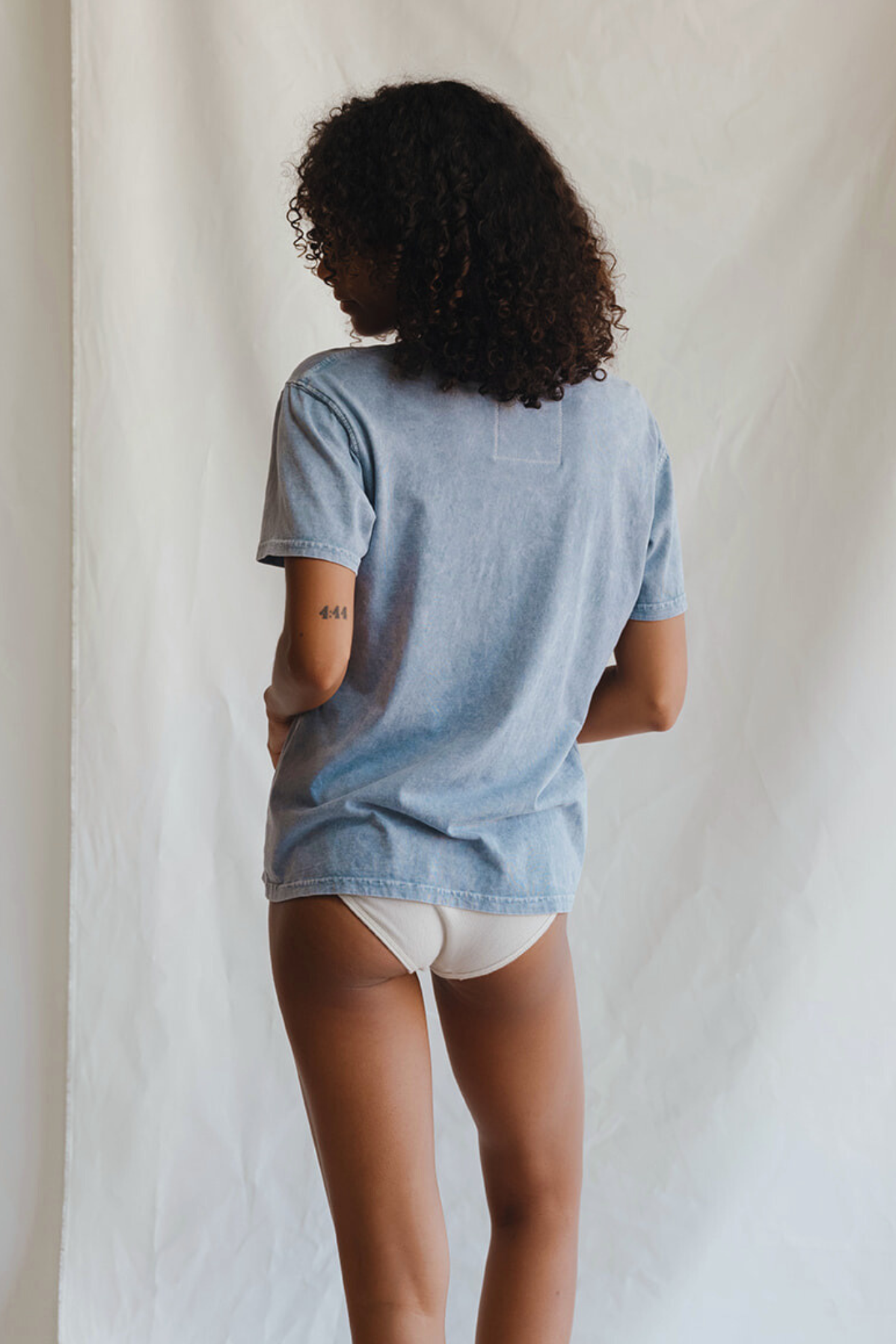Feel the soul in this mineral wash baby blue creation. The gentle wash not only provides a beautifully textured, vintage-inspired backdrop but also enhances the softness of the 100% organic cotton. The print echoes the raw emotion of Janis Joplin's "Cry Baby," making it a wearable piece of music history. Experience the ultimate comfort and conscious style with this soft, breathable garment that's as kind to the planet as it is to your skin. It's a wearable piece of music history with a soft, comfortable edge, crafted for both style and sustainability.