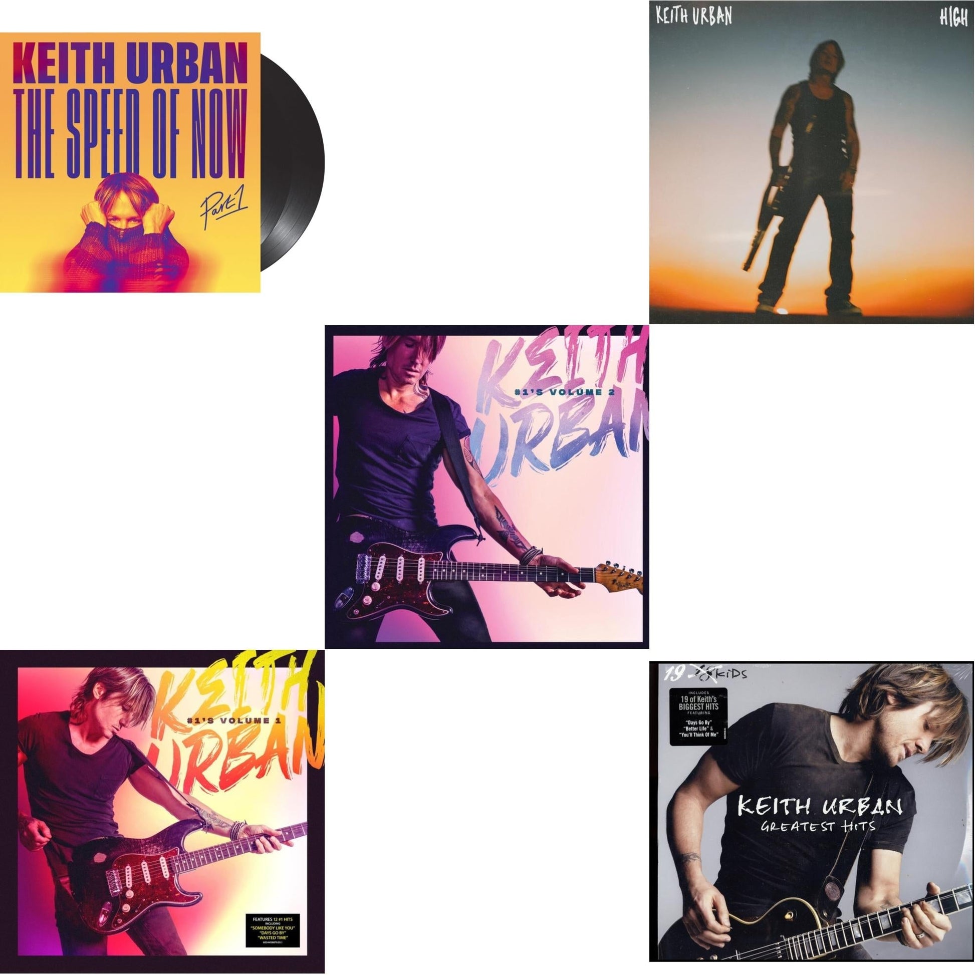 Keith Urban - Speed Of Now Part 1 (2LP) & #1'S - Volume 1 (Coke Bottle Clear LP Vinyl) & #1'S - Volume 2 (Grape LP Vinyl) & High & Greatest Hits - 19 Kids (2 LP)