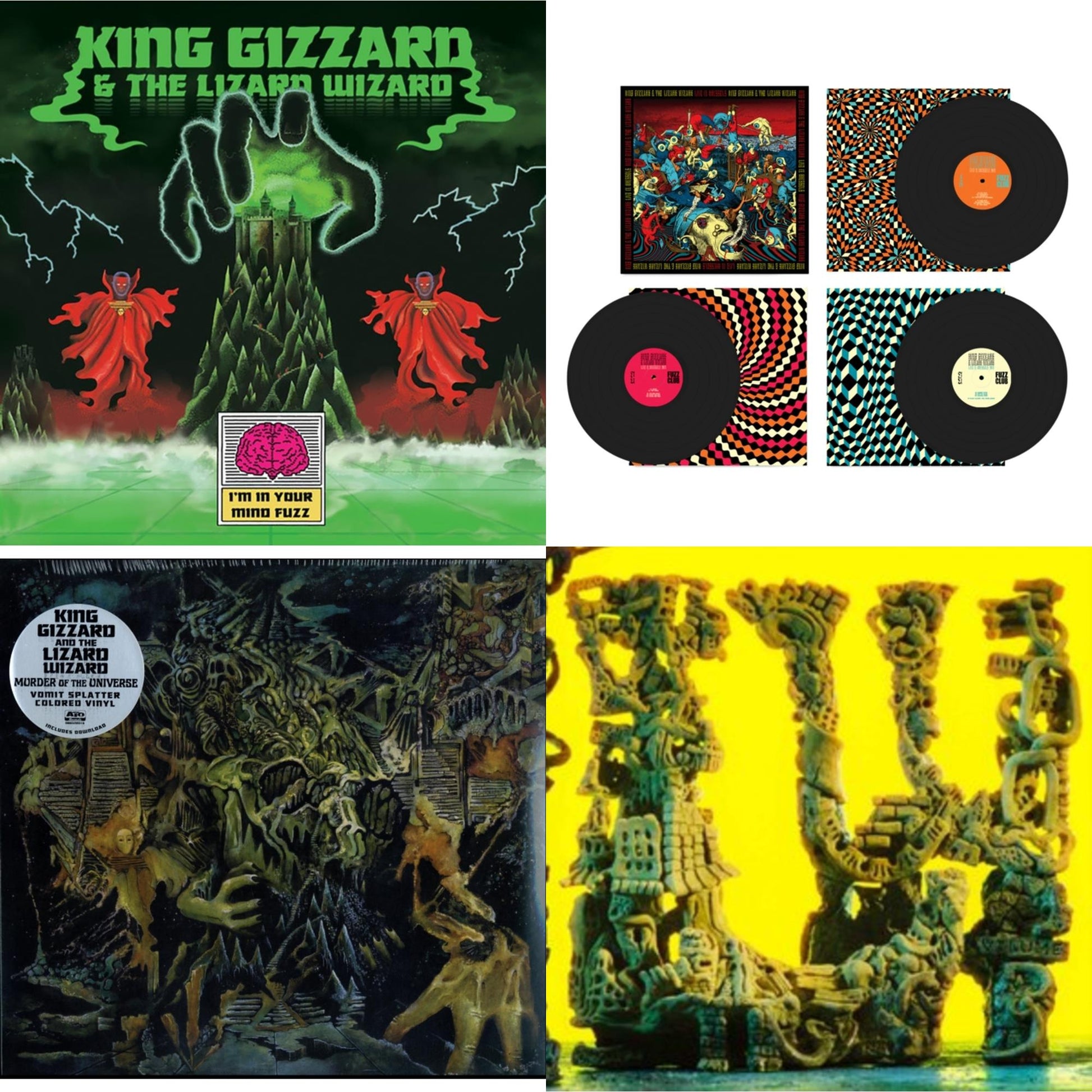 King Gizzard & The Lizard Wizard - Live In Brussels '19 (Fuzz Club Official Bootleg) & L.W. & I'm In Your Mind Fuzz & Murder Of The Universe (Transparent Green W/Mustard Yelow Splatter LP Vinyl)