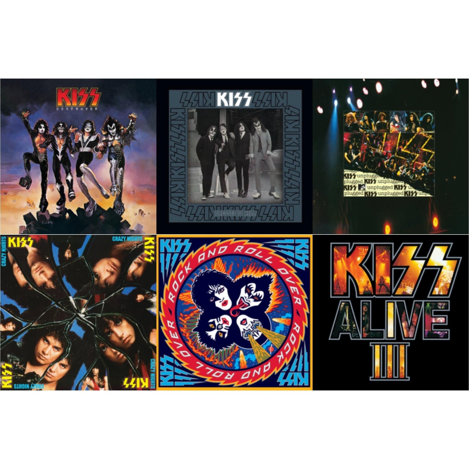 Kiss - Destroyer & Dressed To Kill & Mtv Unplugged & Crazy Nights & Rock & Roll Over & Alive Iii - LP Vinyl Bundle