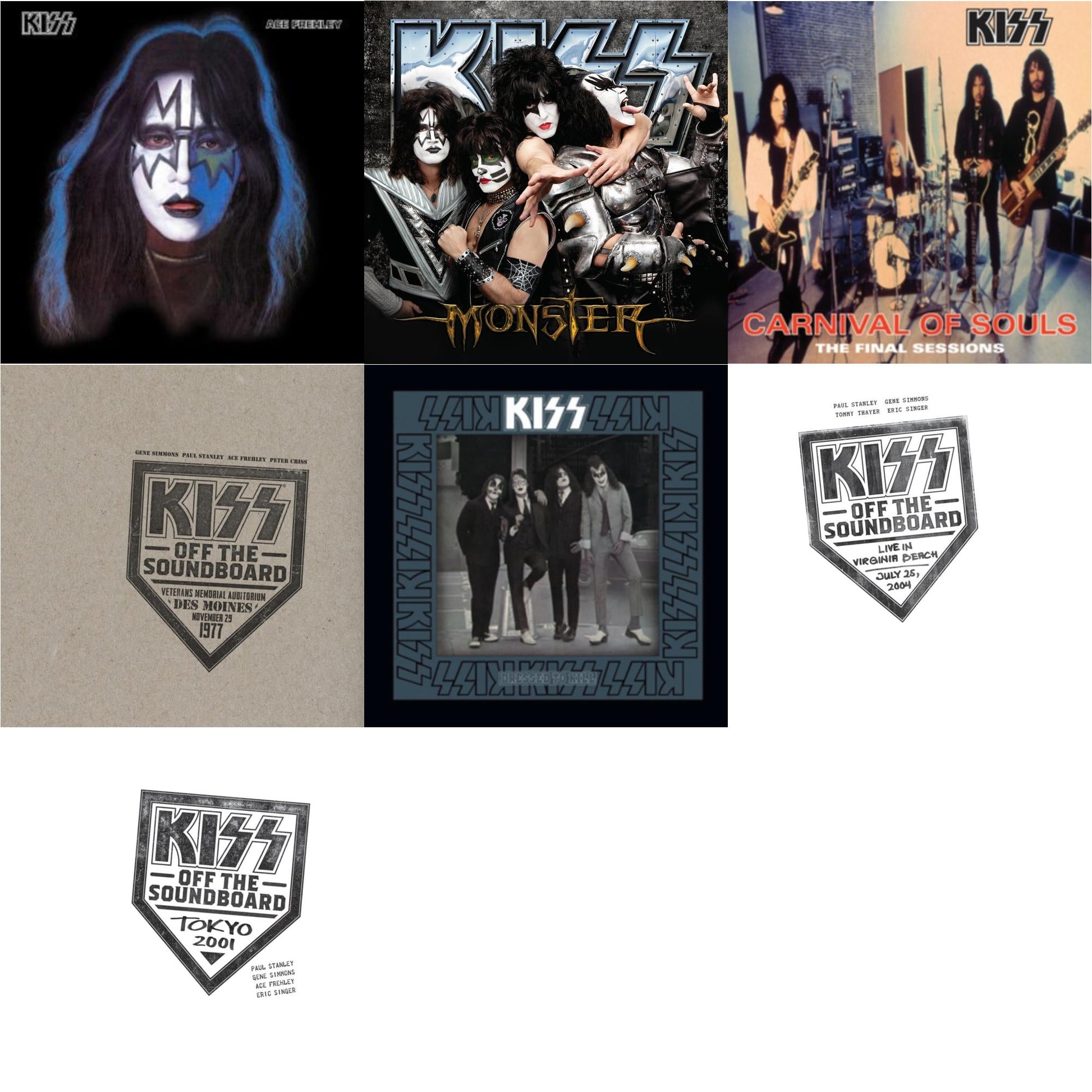 Kiss - Kiss Off The Soundboard: Tokyo 2001 (3LP) & Kiss Off The Soundboard: Live In Virginia Beach (3LP) & Kiss Off The Soundboard: Live In Des Moines (2LP) & Monster & Dressed To Kill & Carnival Of Souls & Ace Frehley