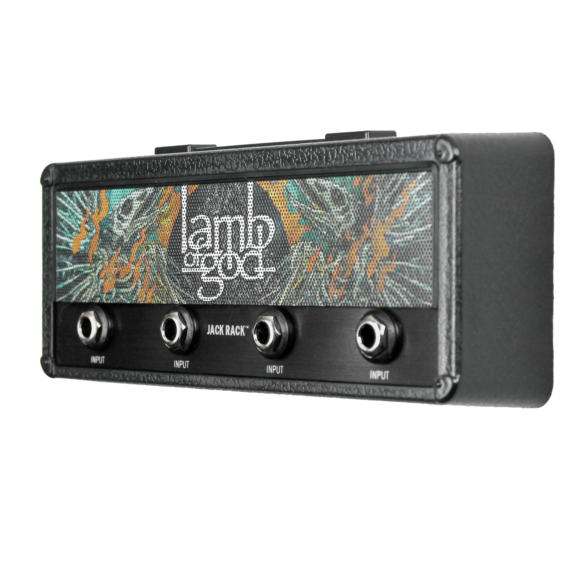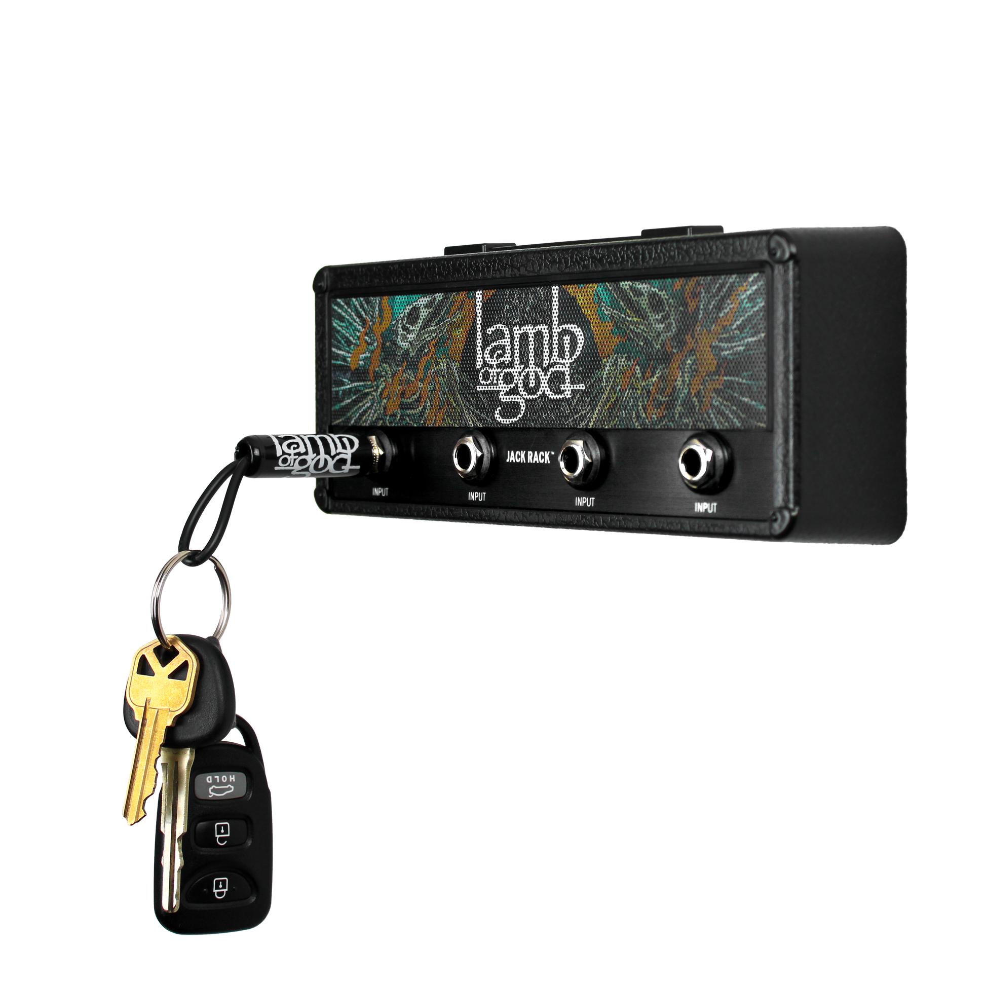The official Lamb of God Magnetic Jack Rack® has arrived—and it's forged in fire. This vicious collab between groove metal giants Lamb of God and Pluginz transforms your wall into a shrine of pure sonic destruction. Built from real amp parts and branded with punishing artwork, this isn't just a keyholder—it’s a war cry for your hallway.