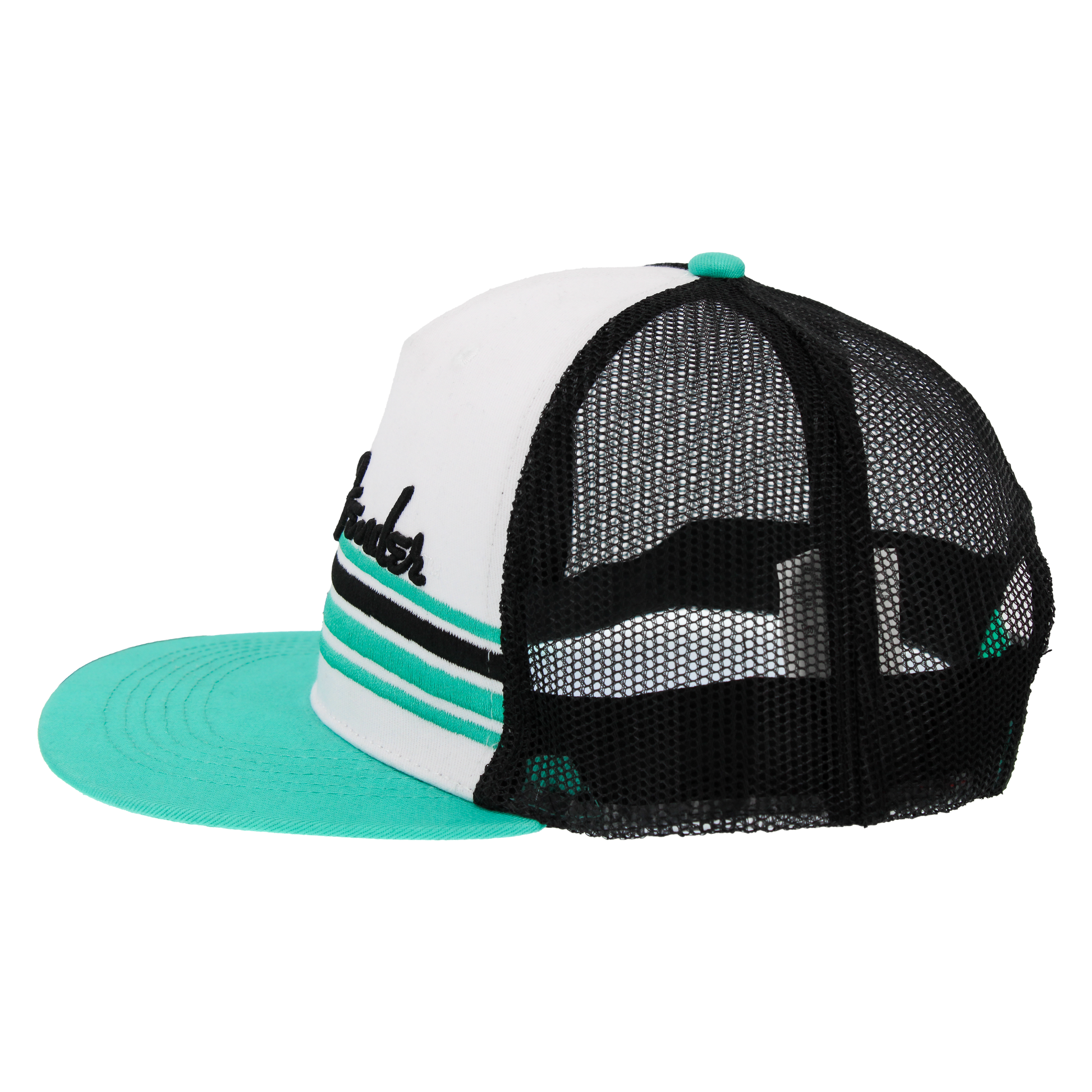 This high-quality hat features a flat brim and an adjustable snapback closure to provide a custom fit. Made of 100% cotton twill, the Malibu Flat bill hat offers lightweight breathability and durability. The embroidered Fender logo on the front and "Fender" text on the back make a bold style statement.