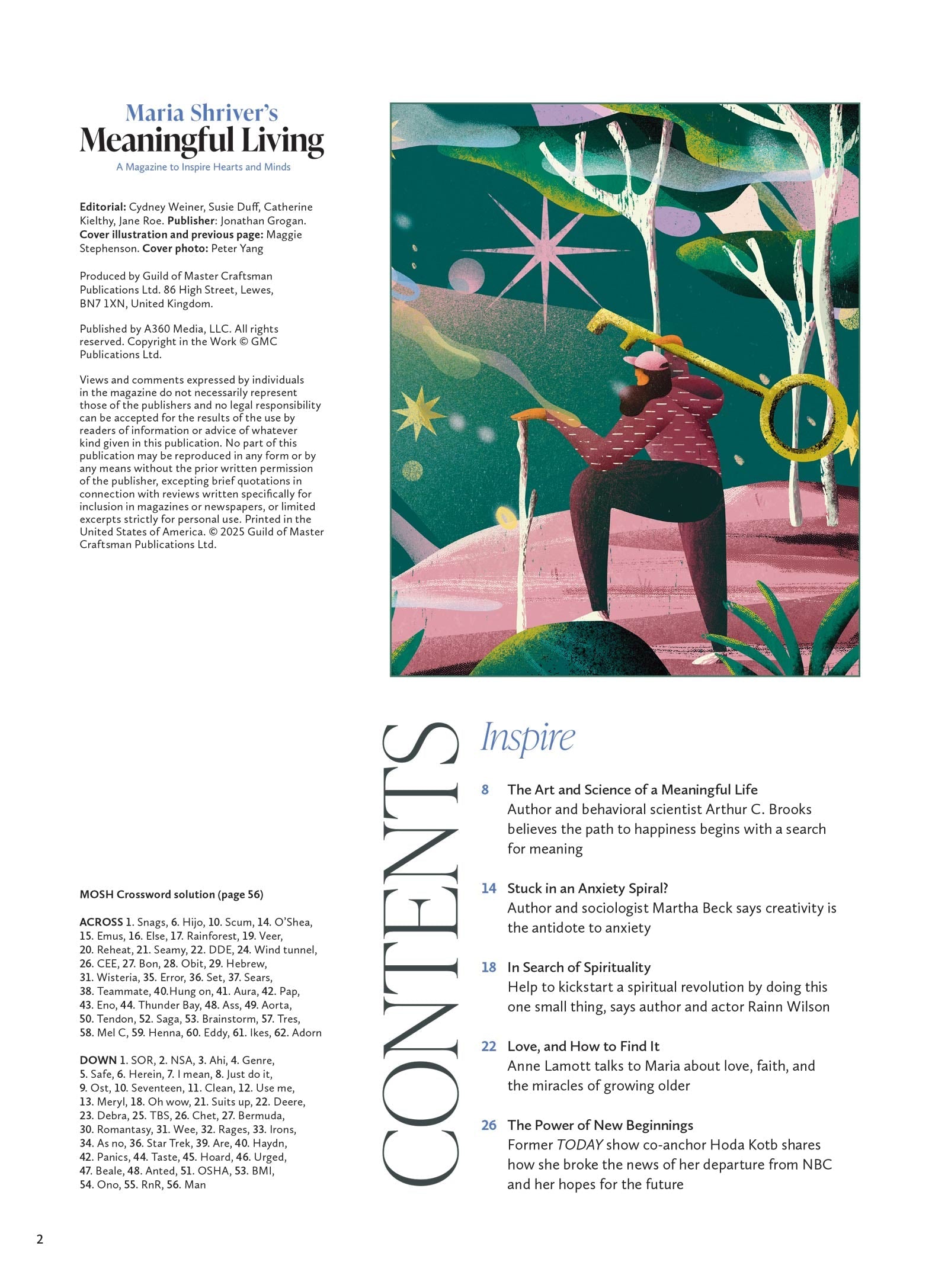Maria Shriver’s Meaningful Living magazine is a print edition of her award-winning, wildly popular digital publication The Sunday Paper. Maria Shriver is an Emmy and Peabody winning journalist, founder of Shriver Media and The Women’s Alzheimer’s Movement at Cleveland Clinic, and the former first lady of California. The Sunday Paper is for those with passion and purpose who want to live deeply meaningful lives and move themselves and humanity forward. Maria Shriver’s Meaningful Living magazine brings together a host of America’s greatest hearts and minds—New York Times bestselling authors, renowned scientists, psychologists, and nutritionists—to offer their insights and wisdom for anyone in search of inspiration, connection, community, and a more meaningful life.