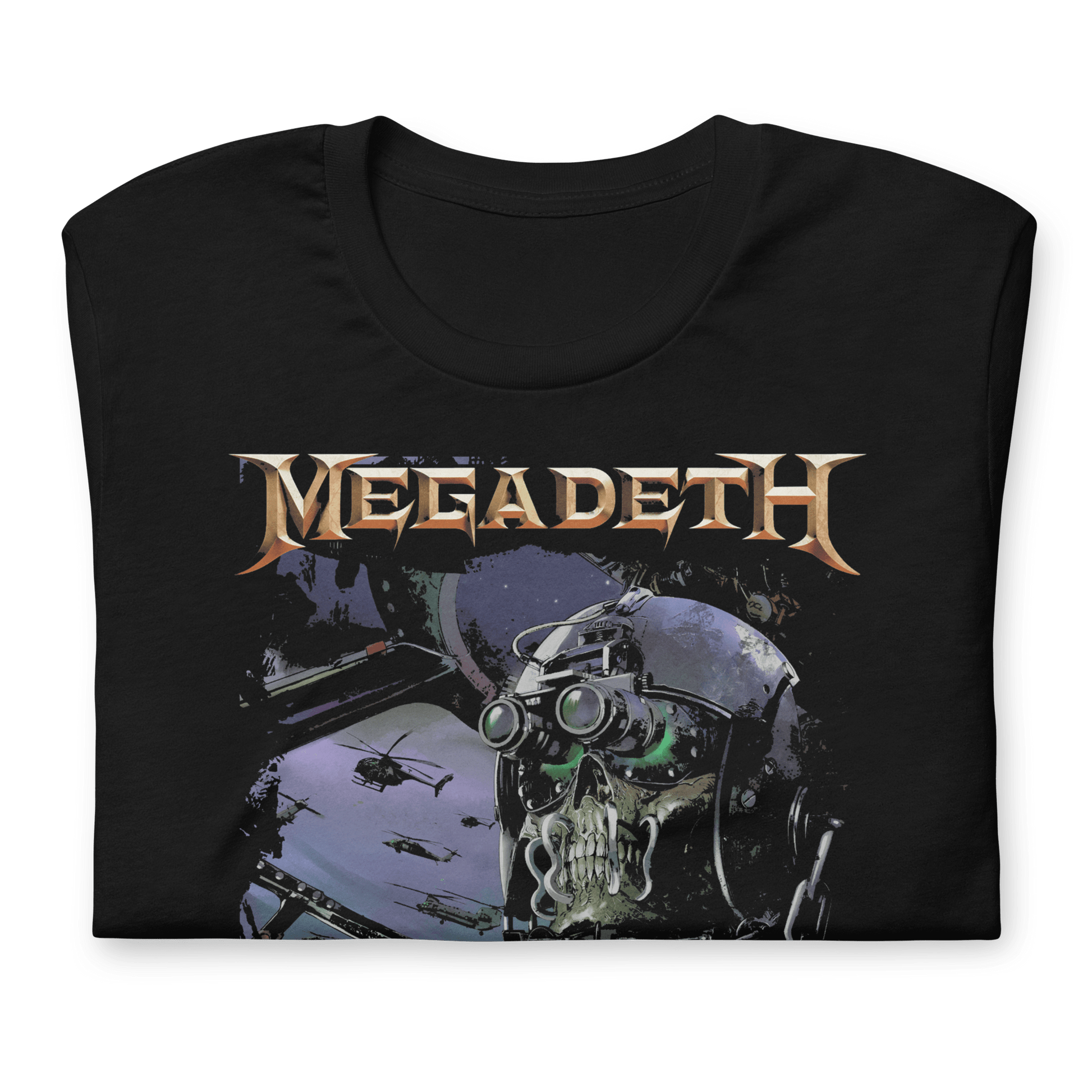 Megadeth, pioneers of thrash metal, have been a force in the music industry since their formation in 1983. Led by the virtuoso guitarist Dave Mustaine, the band is renowned for their complex compositions, aggressive sound, and thought-provoking lyrics, which have earned them a dedicated following worldwide. With iconic albums like "Rust in Peace" and hits such as "Symphony of Destruction," Megadeth's relentless energy and technical prowess have solidified their place in heavy metal history. Celebrate the legacy of Megadeth and appreciate their significant contributions to the genre, inspiring countless musicians and fans alike.Check out more of the best Megadeth T-Shirts!