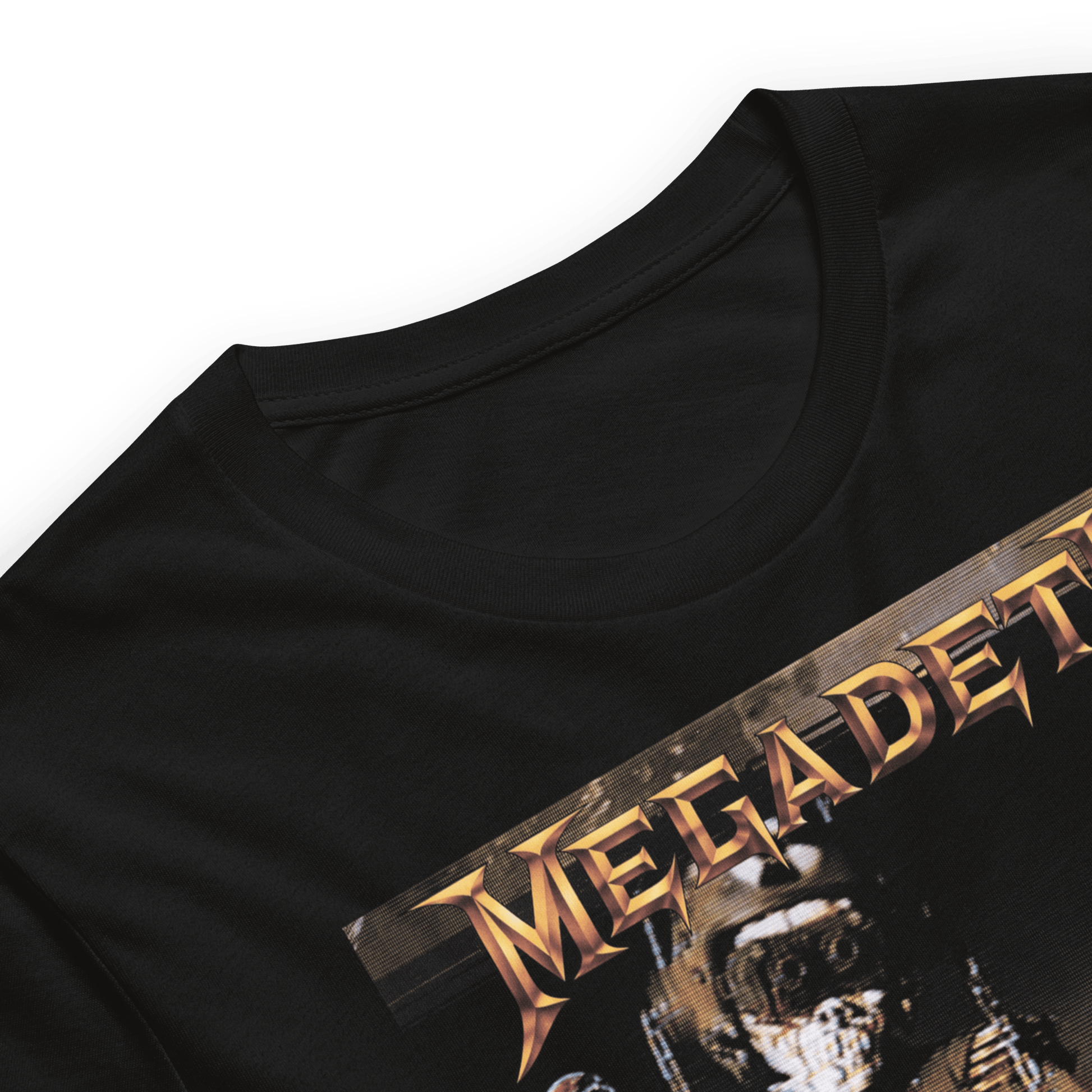 Megadeth, pioneers of thrash metal, have been a force in the music industry since their formation in 1983. Led by the virtuoso guitarist Dave Mustaine, the band is renowned for their complex compositions, aggressive sound, and thought-provoking lyrics, which have earned them a dedicated following worldwide. With iconic albums like "Rust in Peace" and hits such as "Symphony of Destruction," Megadeth's relentless energy and technical prowess have solidified their place in heavy metal history. Celebrate the legacy of Megadeth and appreciate their significant contributions to the genre, inspiring countless musicians and fans alike.Check out more of the best Megadeth T-Shirts!