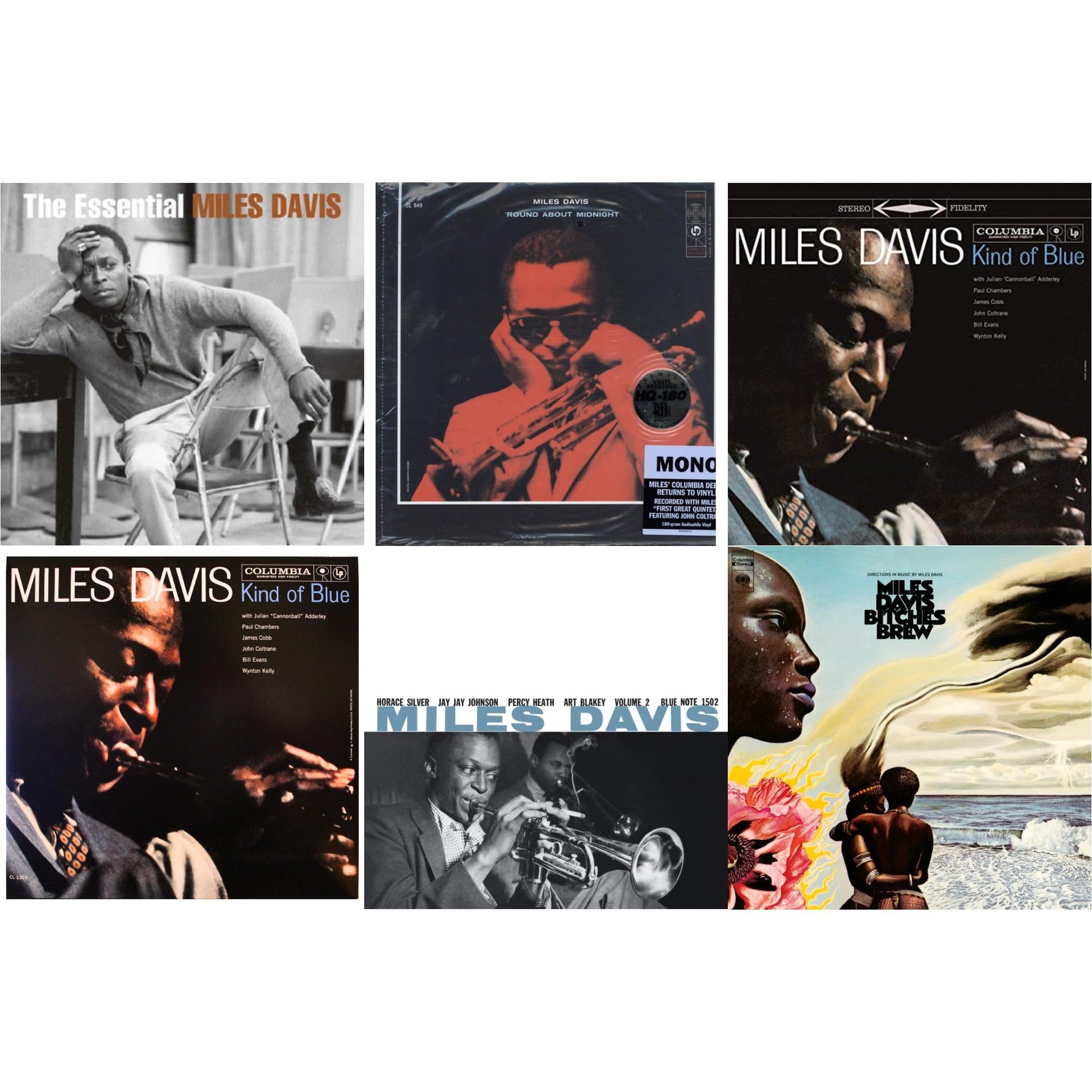 Miles Davis - Bitches Brew (2LP/140G) & Volume 2 (Blue Note Classic LP Vinyl Series) & Kind Of Blue (180G) & Round About Midnight (180G/Mono) & Kind Of Blue (Mono) & Essential Miles Davis (2LP)