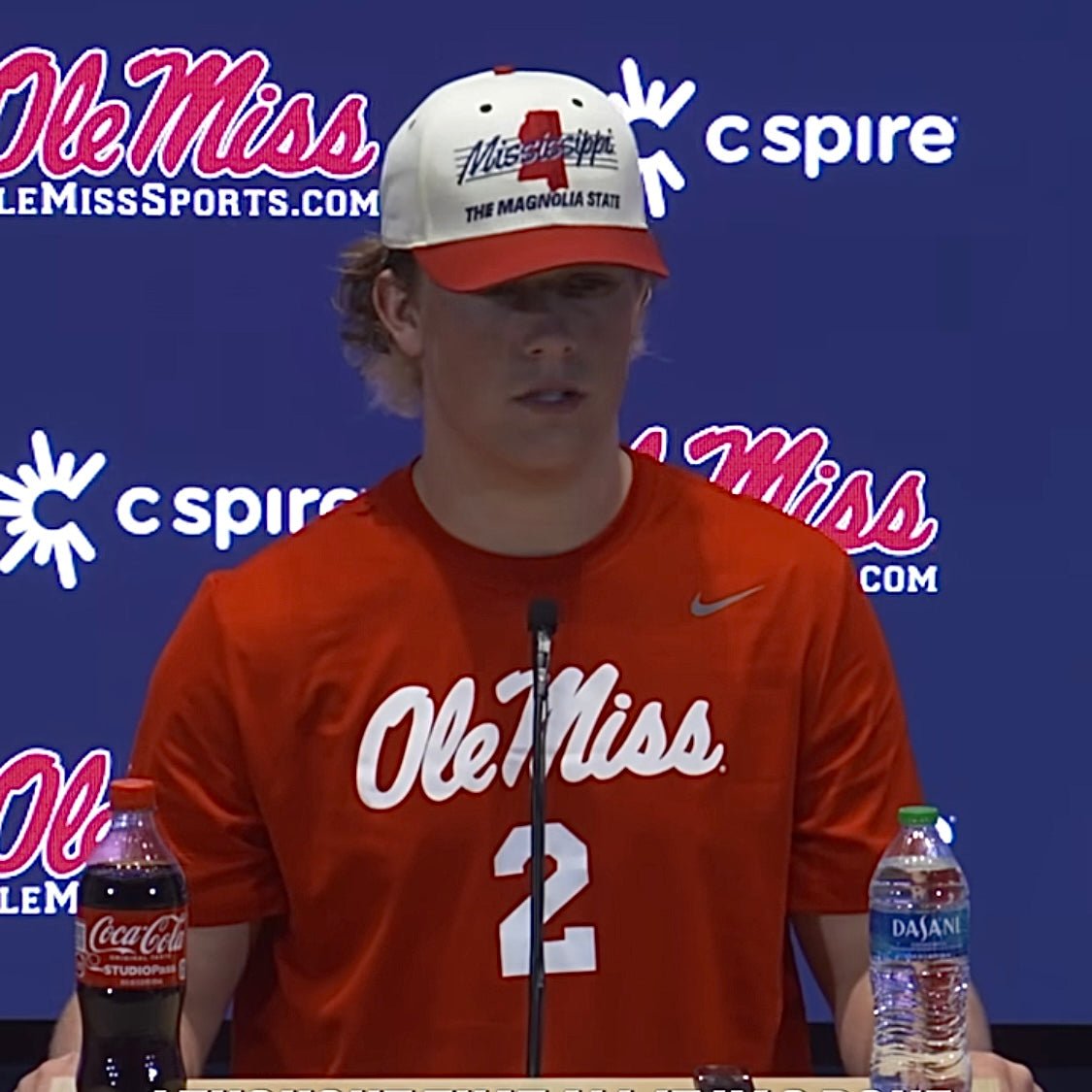 Repping those Ole Miss colors with bold red accents. Clean state outline flows across the cream crown, Mississippi flag completing the story.