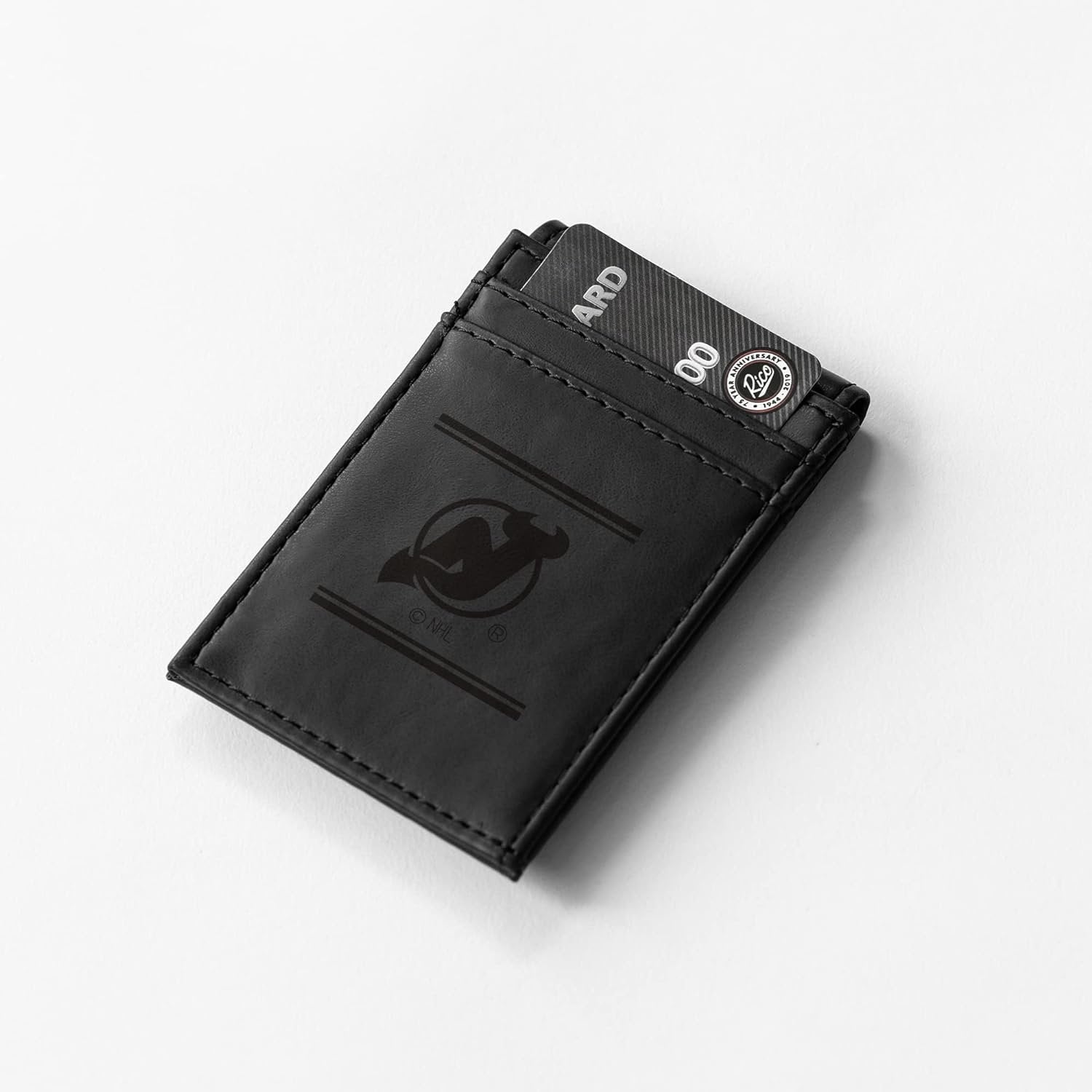 New Jersey Devils Premium Black Leather Wallet, Front Pocket Magnetic Money Clip, Laser Engraved, Vegan
