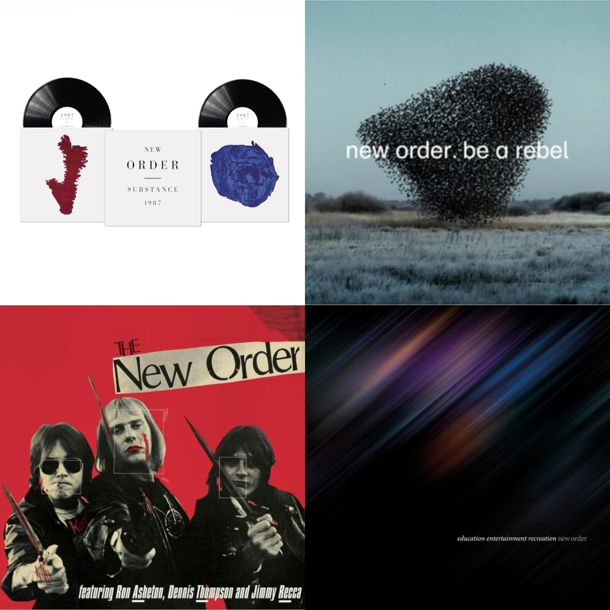 New Order - Education Entertainment Recreation (Live) & Substance (2023 Reissue) (2LP) & Be A Rebel Ep & New Order (Marble LP Vinyl)