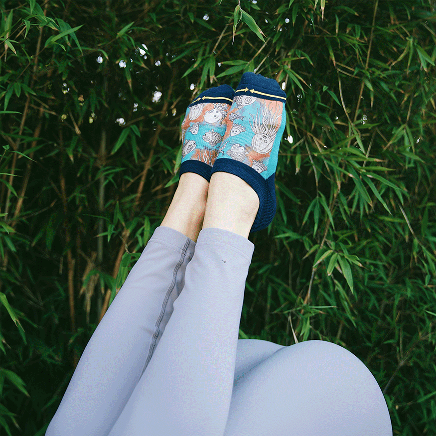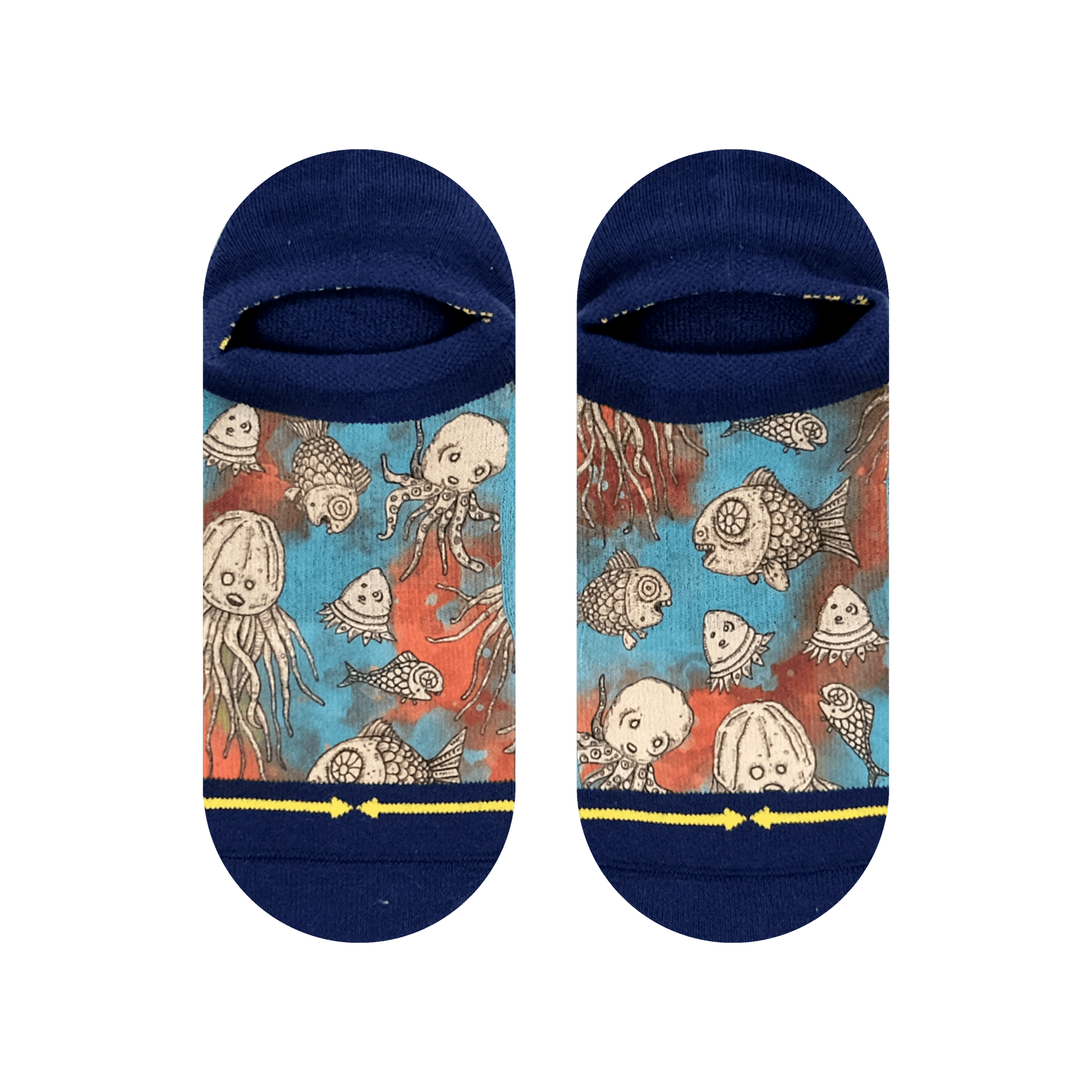 Make a splash with MERGE4 no show socks featuring Artistic Sea Creatures by Otis Link! These socks come with a non slip cuff, and a padded soles with a Y heel pocket. The artistic watercolor artwork includes sea creatures such as jellyfish and octopuses. Whether you love the beach or just want a unique accessory, these socks will add a creative touch to your outfit.