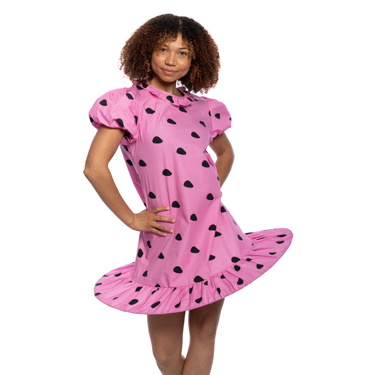 Peanuts Sally Comic Strip Halloween Costume: Pink Polka Dot Mini Dress with Puff Sleeves for Fun Cosplay