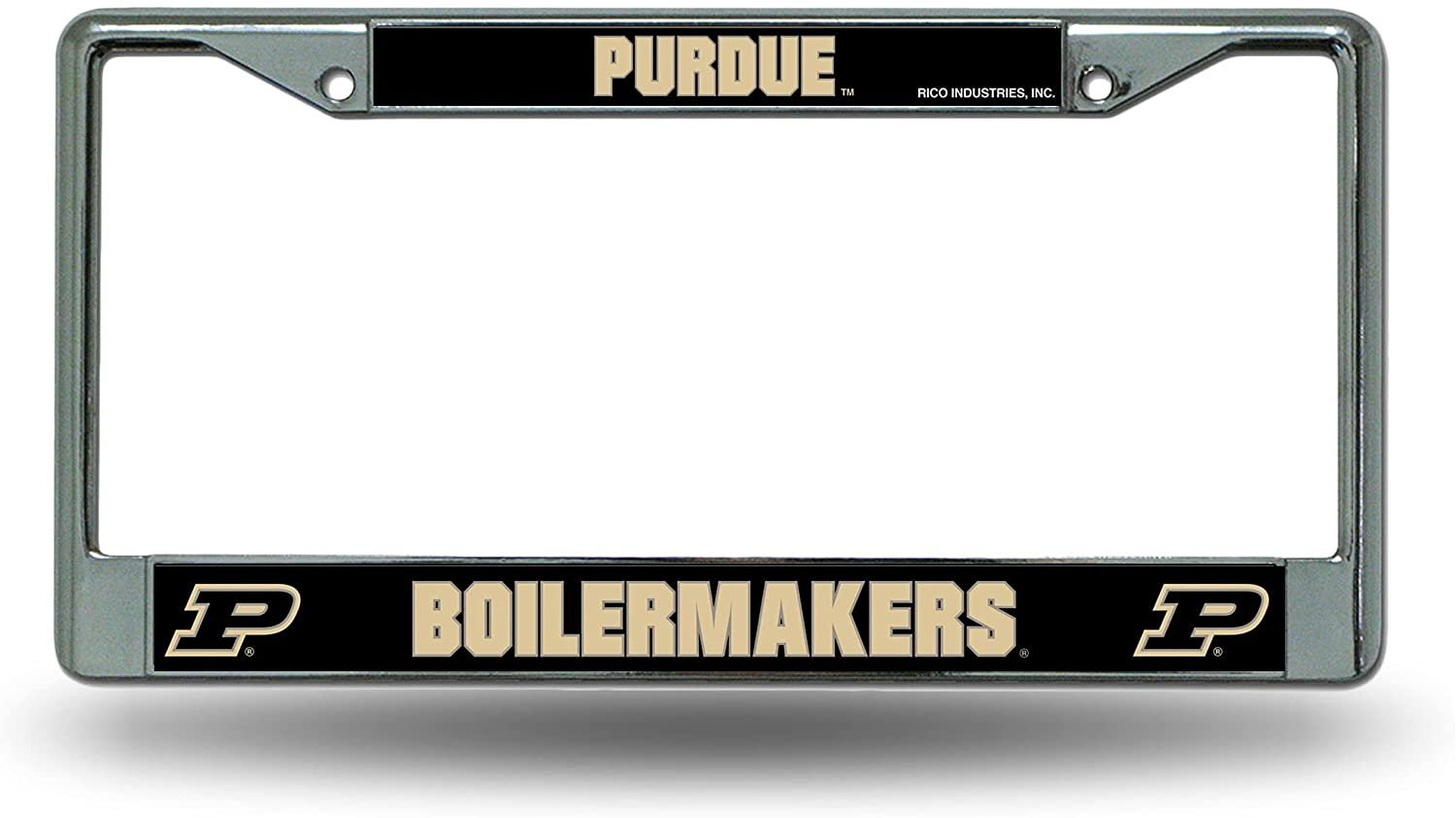 - Trust; it's not a word used lightly these days. Over the last 75 years, Rico Industries has earned an unparalleled reputation for trust and integrity among it's customers. Our Standard Chrome License Plate Frame makes a big impact with sleek chrome finish against vivid team name plate and color team logos. Fits all standard license plates, measure 6" x 12.25". Pre-drilled holes make this piece easy to hang to your vehicle and is sure to add some more excitement to your drive.