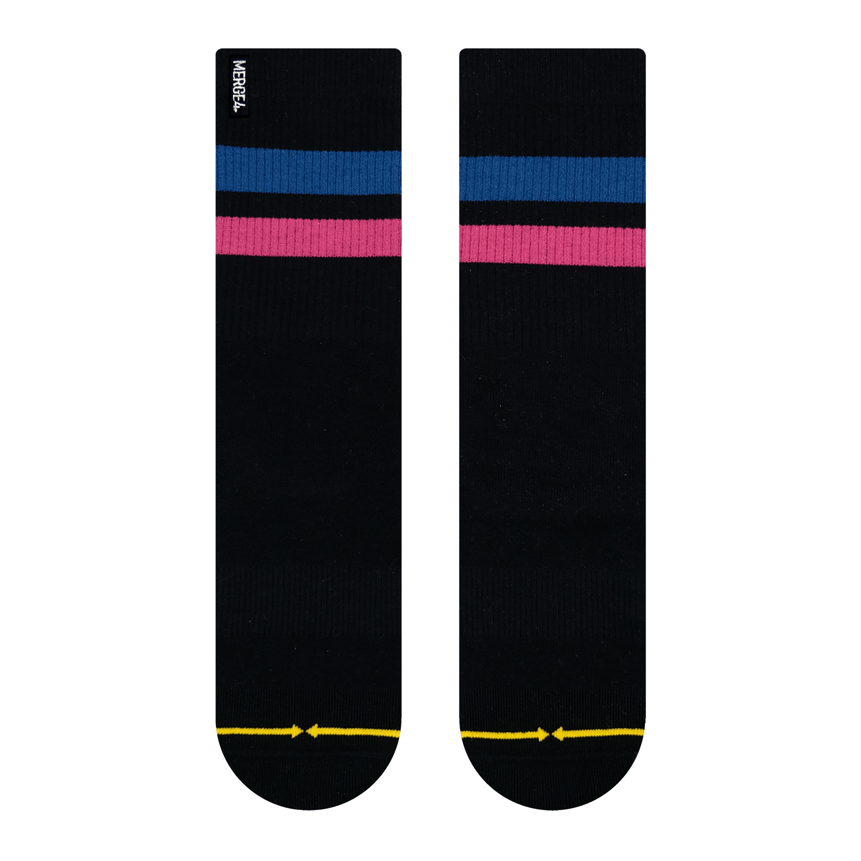 MERGE4's new socks with Repreve fibers are the perfect combination of style, sustainability, and performance. Made with high-quality recycled plastic bottles and other premium materials. Not only are they sustainable, these socks are moisture-wicking and feature padded soles with a Y heel pocket. By choosing these socks, you're helping to reduce waste and conserve resources while enjoying the same quality and performance you expect from MERGE4. These stripes on these socks have an athletic look and feel, which makes them perfect to complete your workout fit.