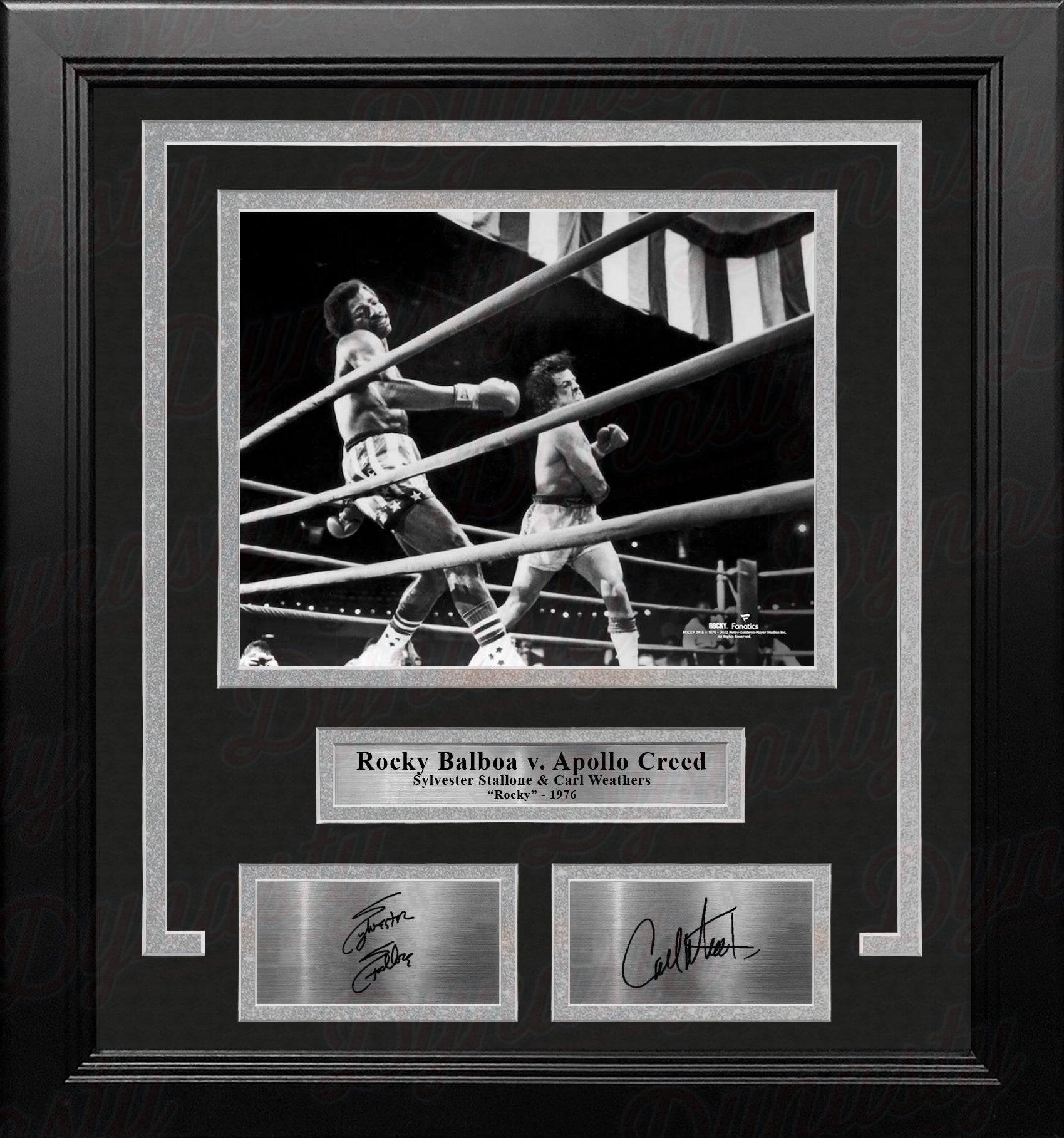 - Officially licensed photo that includes laser autographs of actors Sylvester Stallone and Carl Weathers
