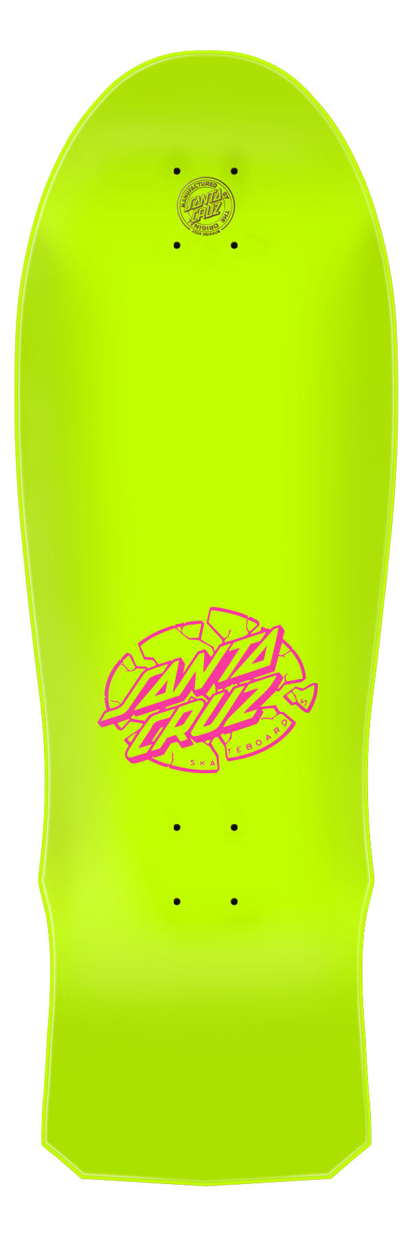 Santa Cruz Skateboards Claus Grabke Exploding Clock Reissue deck featuring newly remastered spot matte neon graphics on full dip neon green deck with laser etched 2024 reissue decktop logo.7 ply North American Maple pressed individually using epoxy - making a strong, responsive deck with long lasting pop and consistent concave and kick.Cruz Missile II concave is Santa Cruz's infamous tech concave from the 1980s with aggressive, multi-dimensional side to side concave and tail kick along with forward set rocker that comfortably lock in your feet in key areas for a completely unique riding experience - cruising the streets or skating transition on old school or shaped decks with longer tail than nose.