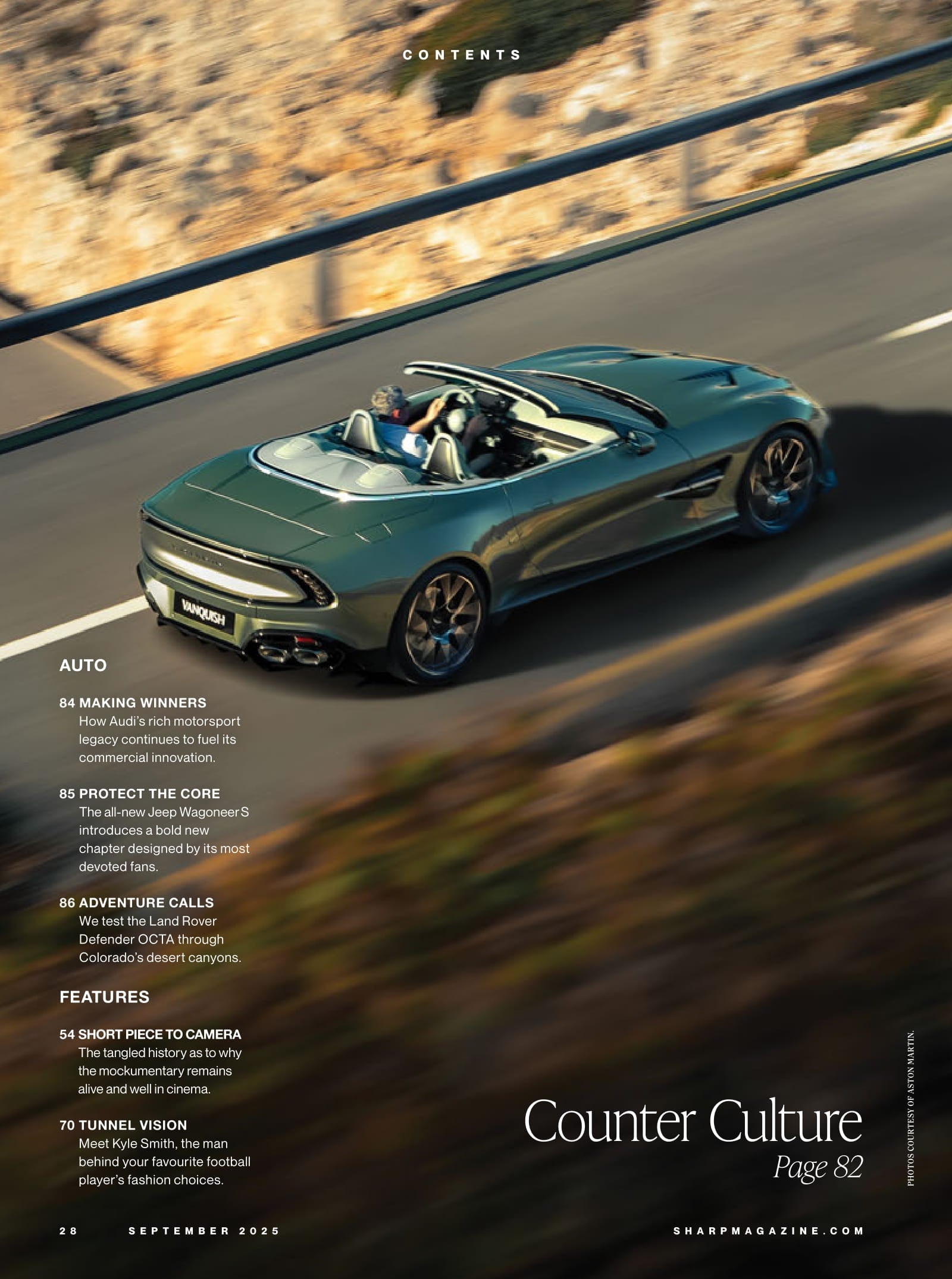 Sharp Magazine - September 2025: The Strange World Of Finn Wolfhard, Turning A New Leaf, The NFL's Style Renaissance, Testing The Defender Octa, 50 Years Of TIFF's Cultural Influence & More!