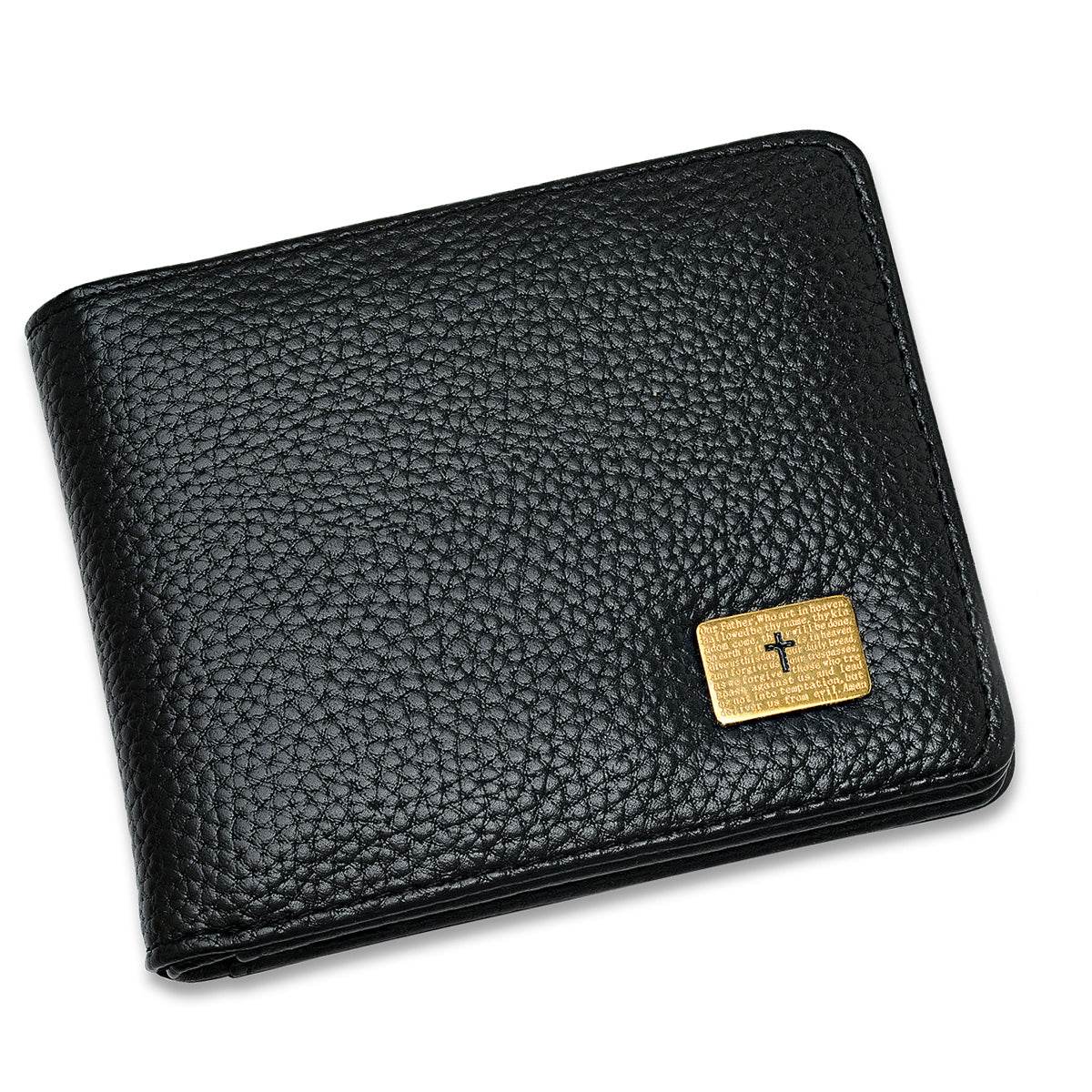 Stainless Steel Curb Bracelet With Cross Accent / With Simulated Leather Lords Prayer Wallet