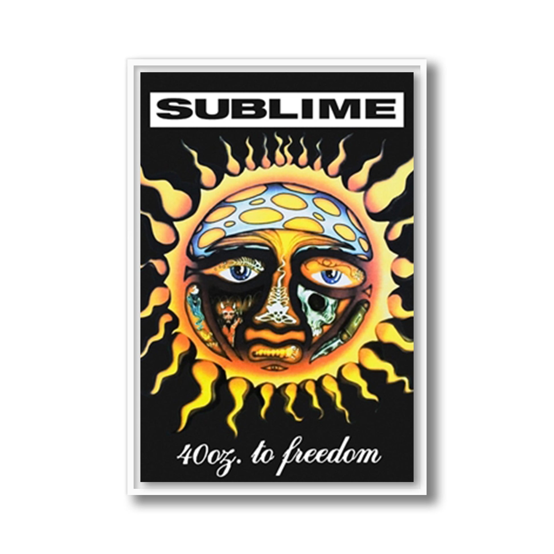 Featuring the vibrant, surreal sun artwork from Sublime’s 40oz. to Freedom, this poster radiates the laid-back yet rebellious energy of the band’s ska-punk sound. The mix of bright colors and bold design makes it an eye-catching tribute to one of the most influential albums of the ‘90s.