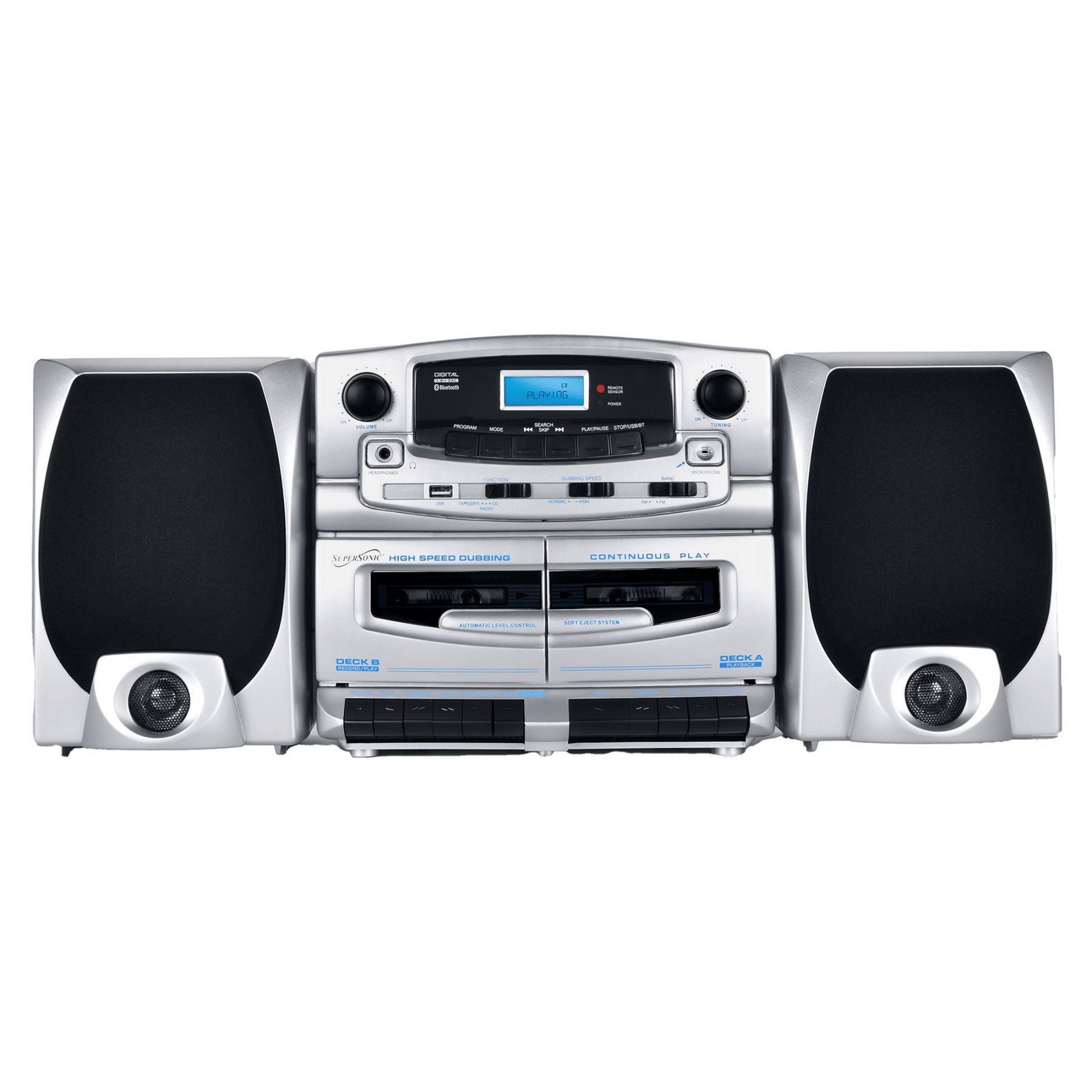 Supersonic Bluetooth Audio System with Double Cassette Recorder & Built-In Mic (SC-2121BT)