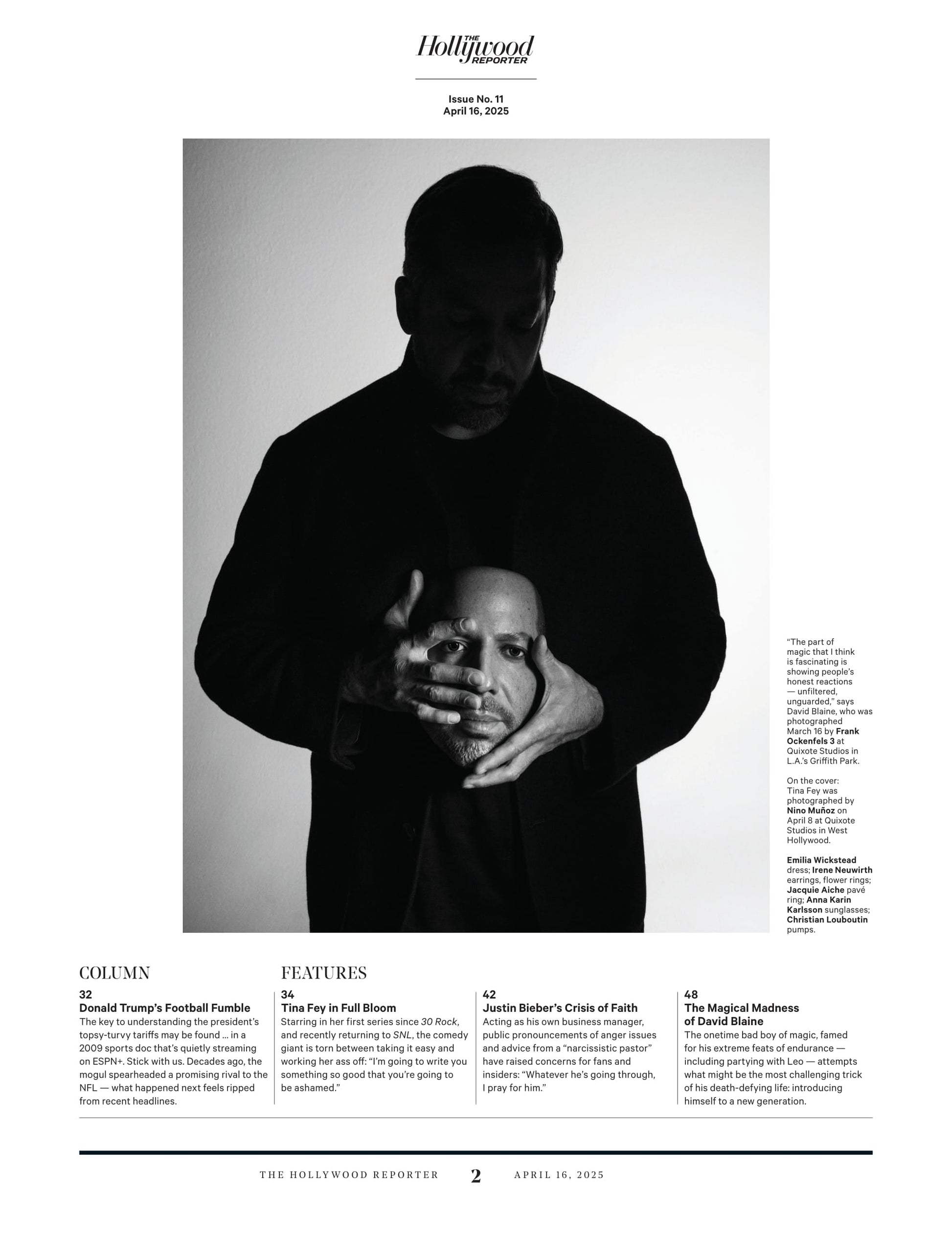 The Hollywood Reporter - 25.04.16 Edition: Tina Fey Returns, Justin Bieber’s Faith Crisis, Minecraft Mess, Gracie Lawrence, Seth Rogen, Hollywood's Tariff Fears, David Blaine’s Bold New Act & More!