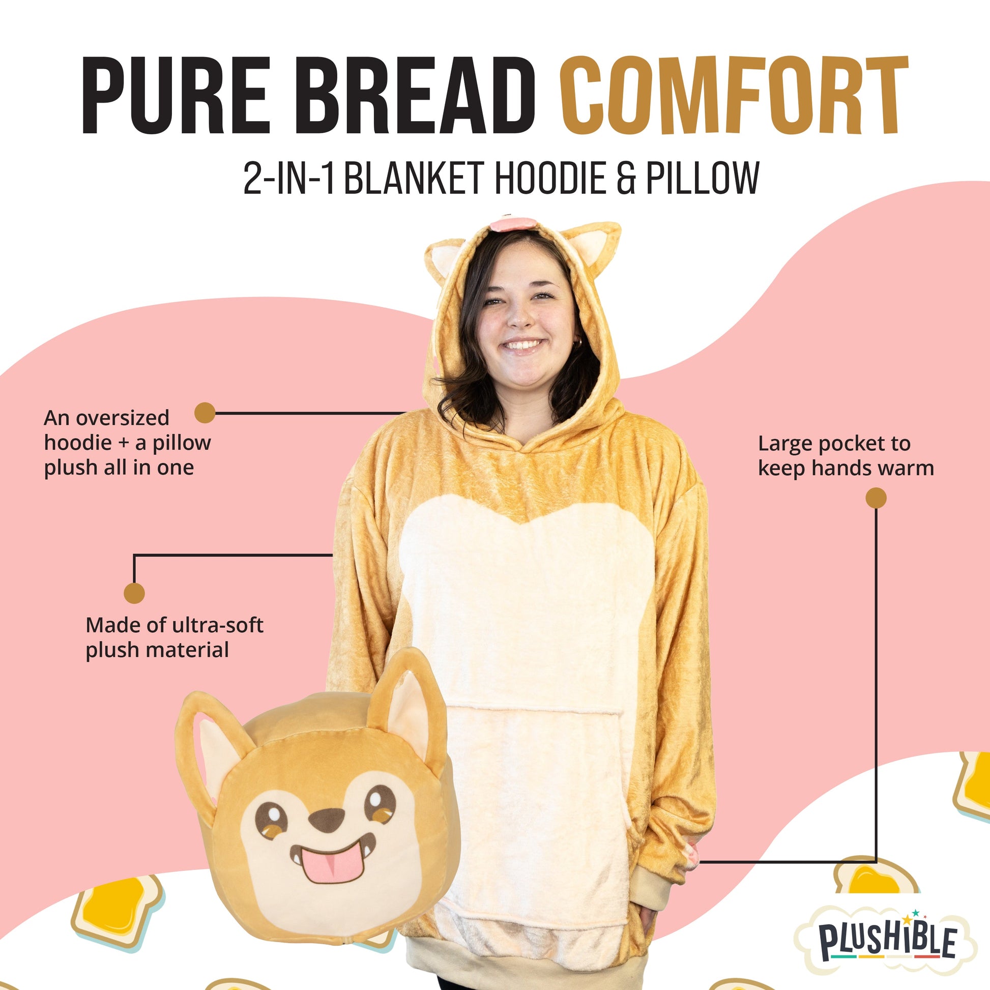 Toast the Corgi Bread Snugible 2-in-1 Blanket Hoodie & Pillow