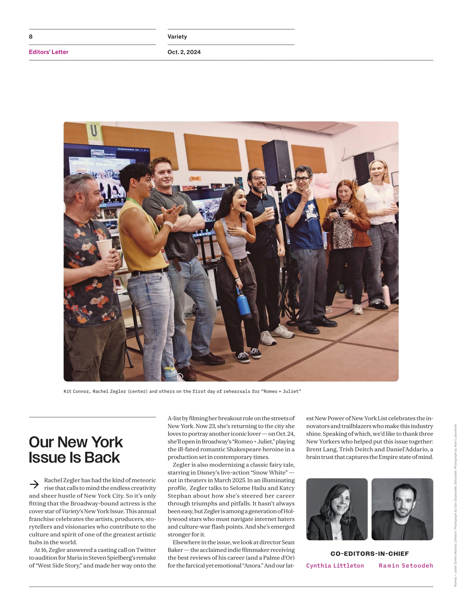 Variety - 24.10.02 Edition: The New York Issue Starring Rachel Zegler, Telling The Tale Of Modern-Day Romeo & Juliet On Broadway!
