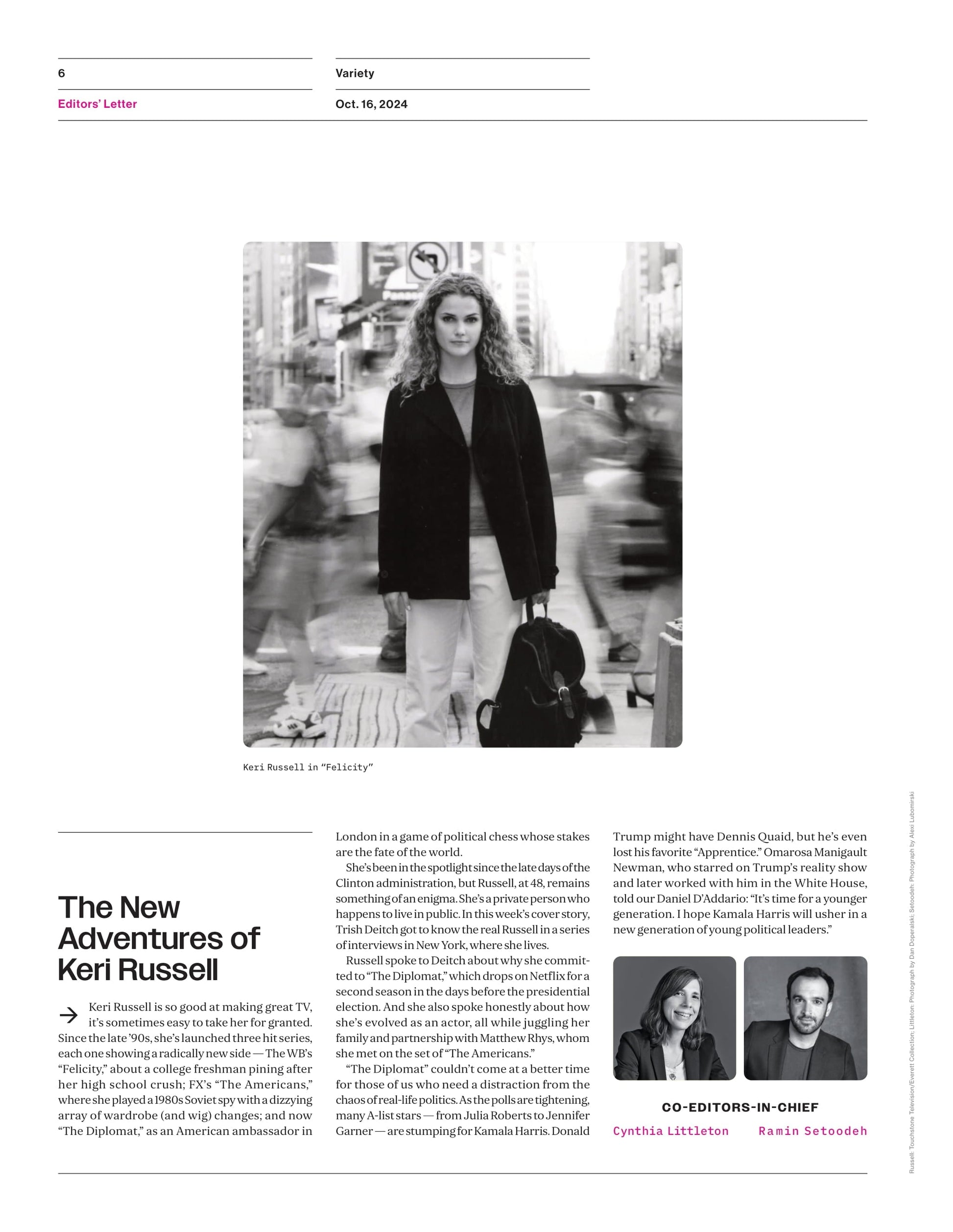 Variety - 24.10.16 Edition: How Keri Russel Star Of Netflix's The Diplomat Is Saving Us This Election Season, The Apprentice Premieres With Sebastian Stan & Jeremy Strong, 10 Actors To Watch & More!