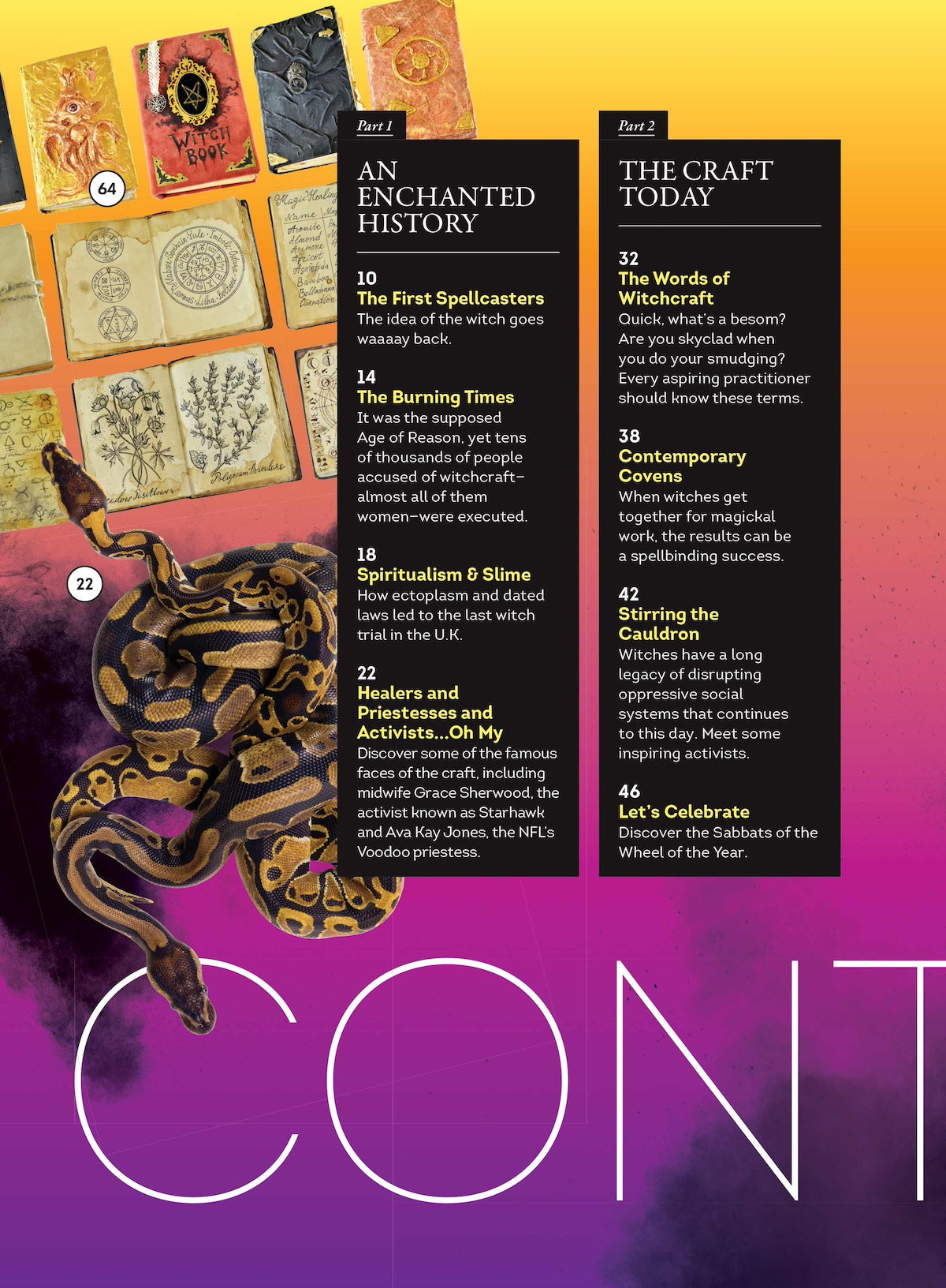 Whether she’s in a black cape stirring a bubbling pot or a teenager discovering her magic for the first time, witches have been a part of pop culture since humans began writing stories, even before. We’ll tell you all about the history of the witch, including the infamous trials in Europe and Salem. Learn about how the witch became a feminist symbol and check out spellbinding places to see. Practicing witches let you know how to get in touch with your inner witch and let you in on what really goes on in contemporary covens. There’s even a primer on spellwork—no cauldron required.