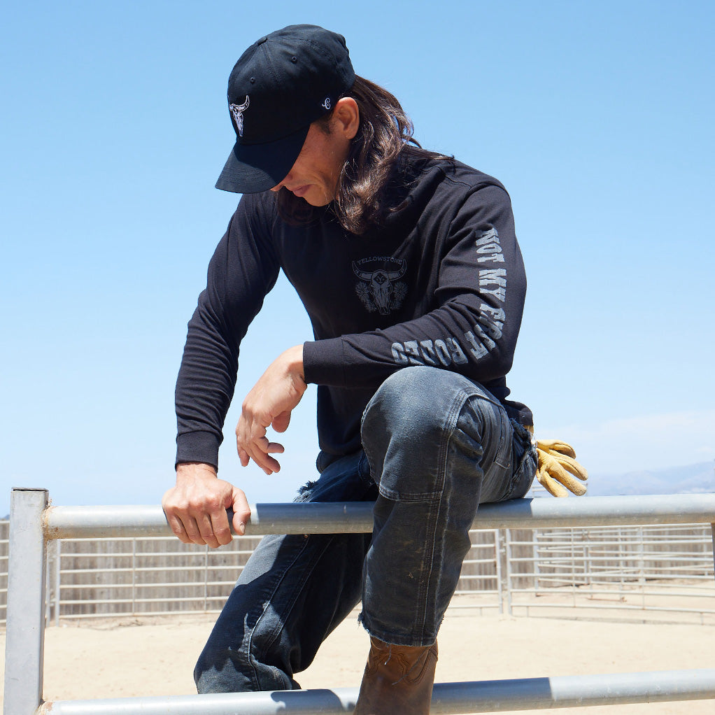 Yellowstone Bull Skull Mens Long Sleeve Shirt Black