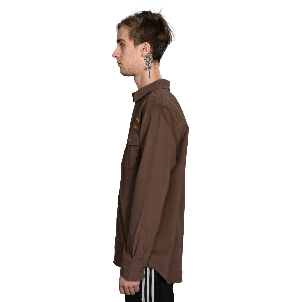 Rugged Ranch Aesthetic: The robust brown long sleeve shirt embodies the essence of life on a rugged ranch.