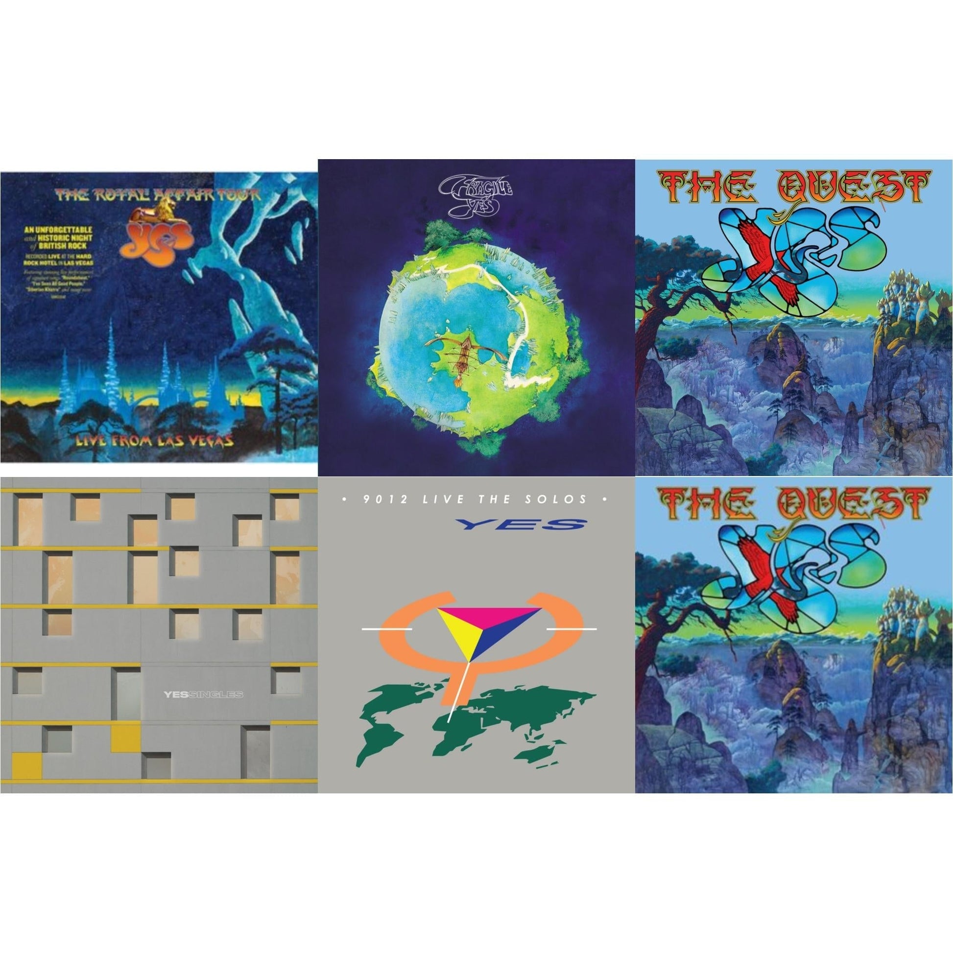 Yes - Yessingles (Yellow/Orange/Black Splatter LP Vinyl) (Rocktober) & Quest (2LP/2CD) & Quest (2LP/2CD/Sky Blue Vinyl) (I) & Royal Affair Tour (Live In Las Vegas) & Fragile (Super Deluxe/LP/CD/DVD) & 9012Live - The Solos (180G/Limited Edition)